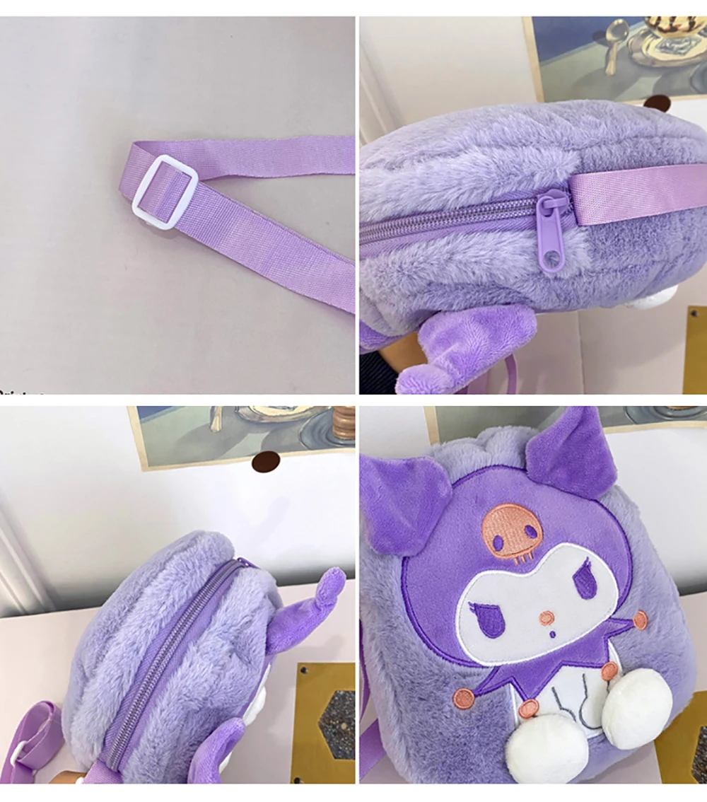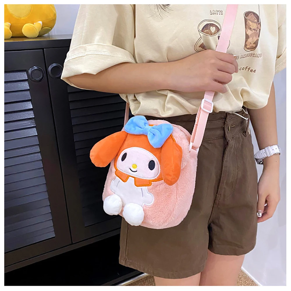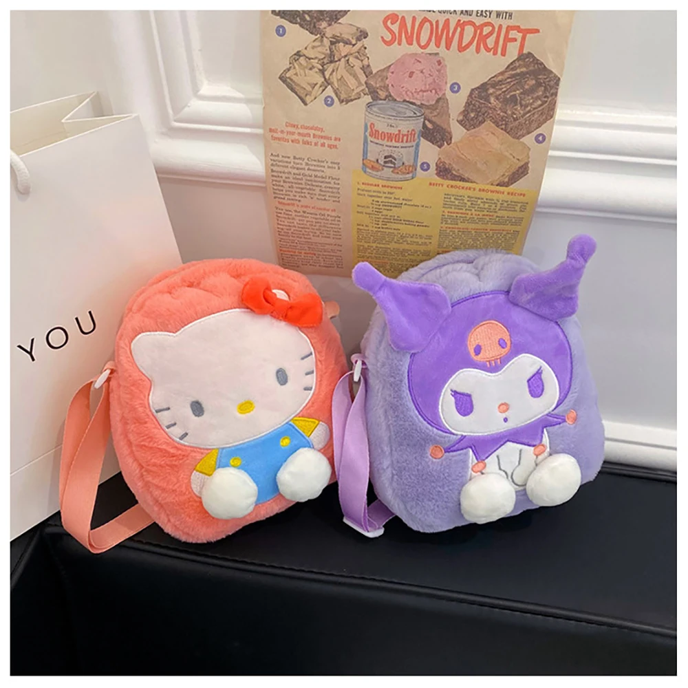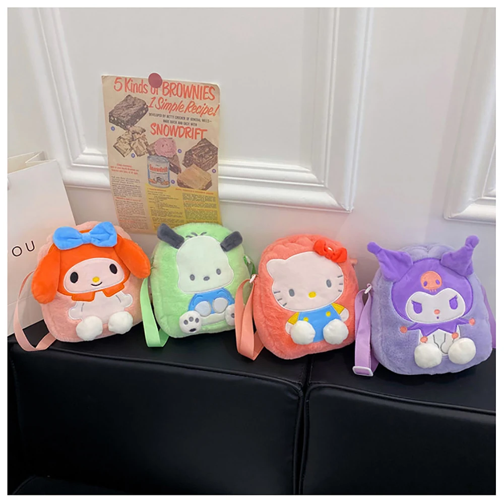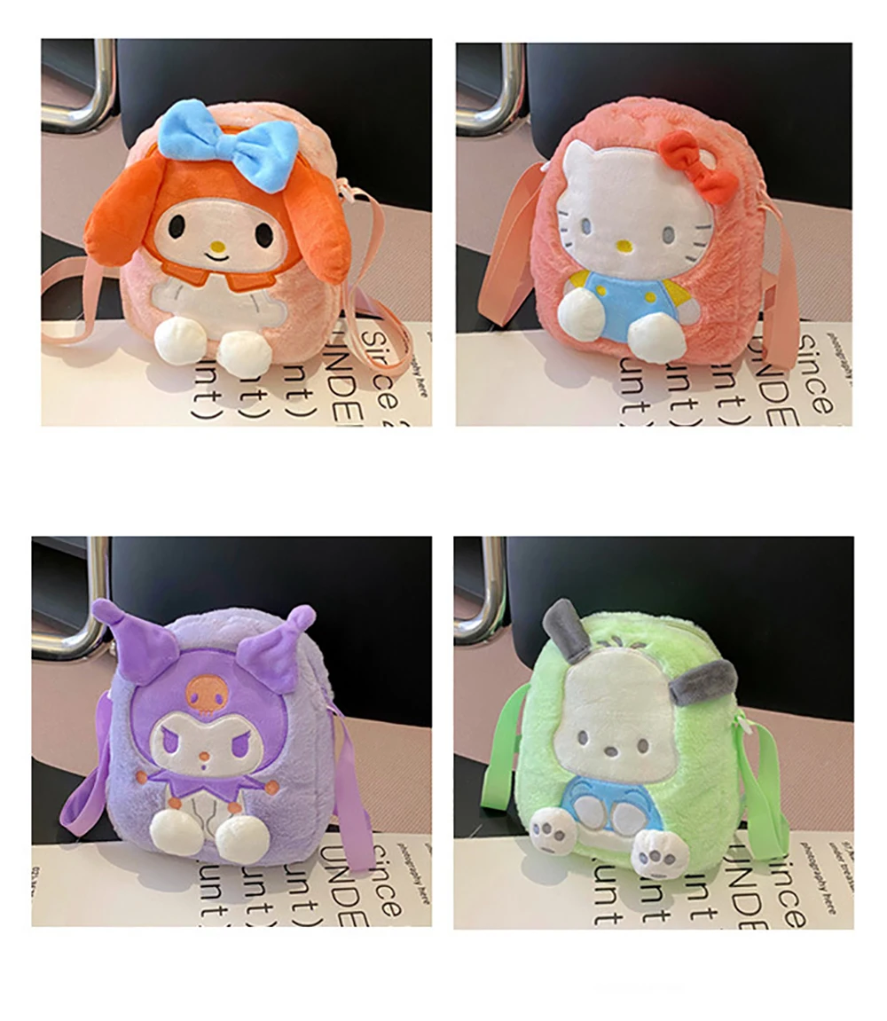 Kawaii Sanrio Plush Shoulder Bags Sanrioed Kuromi Hello Kitty My Melody Messenger Bag Soft Plush Small Square Bag For Girl Gifts