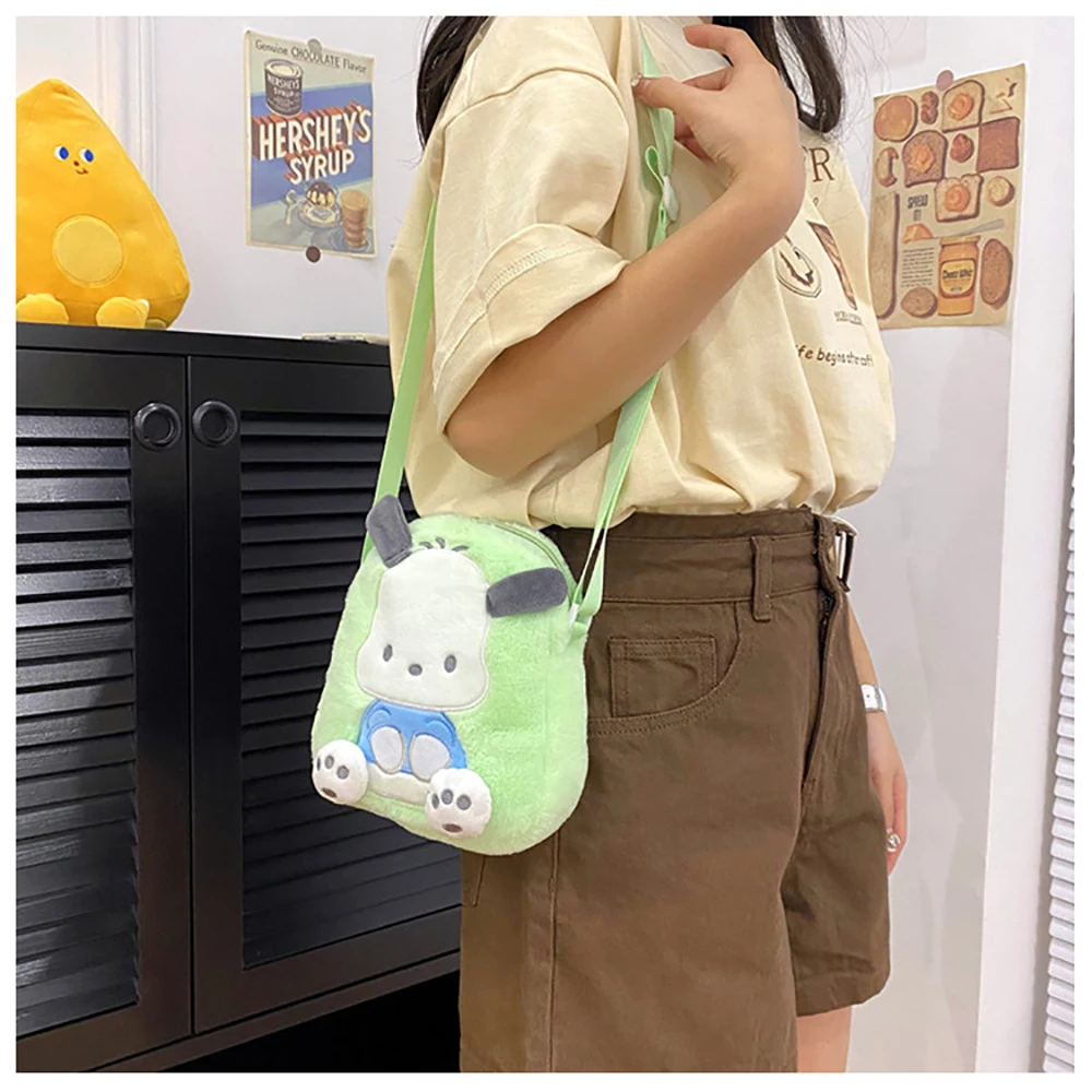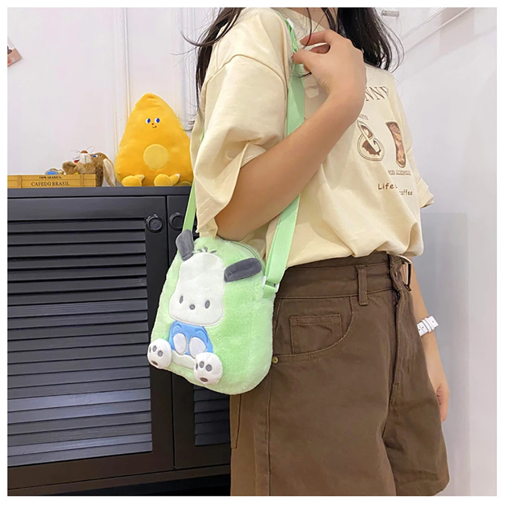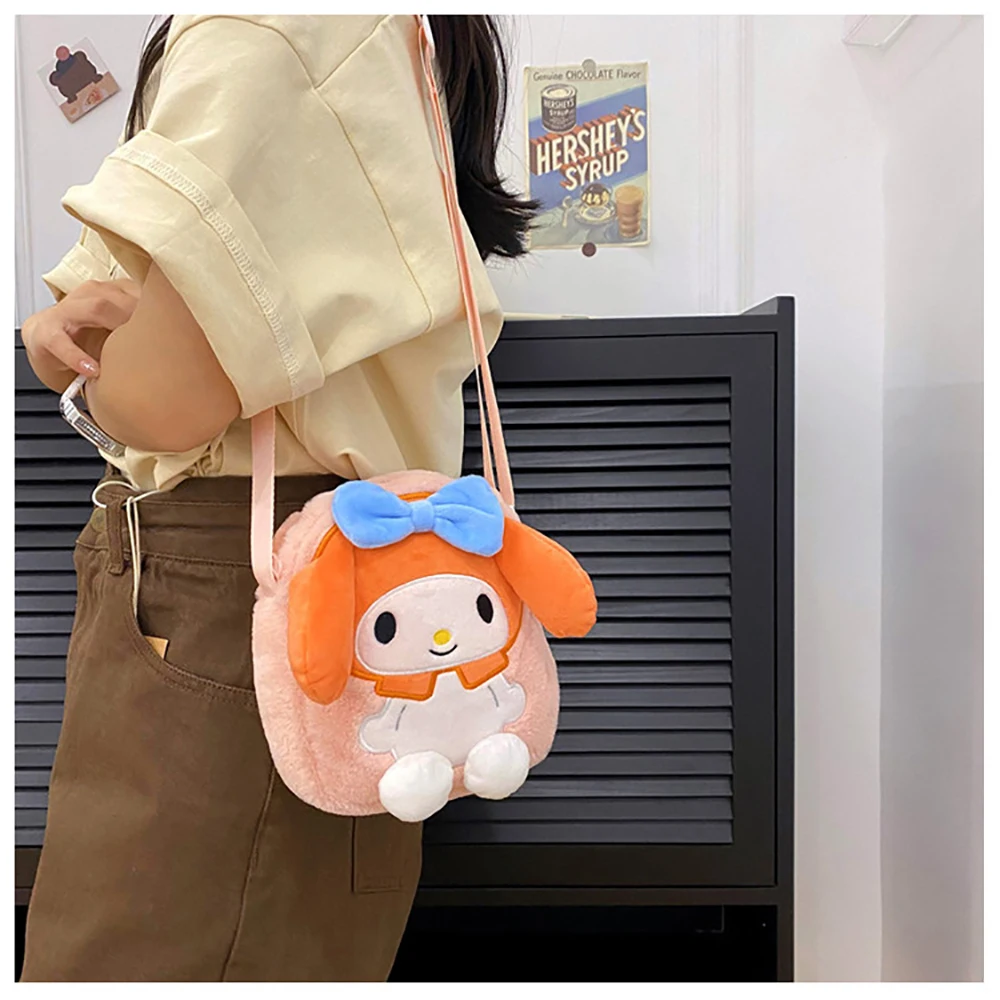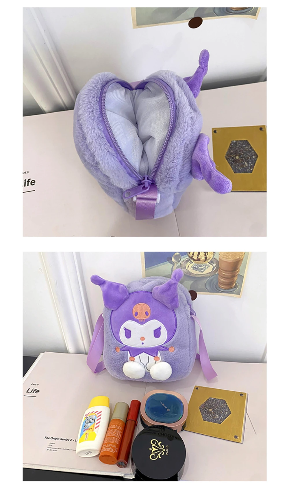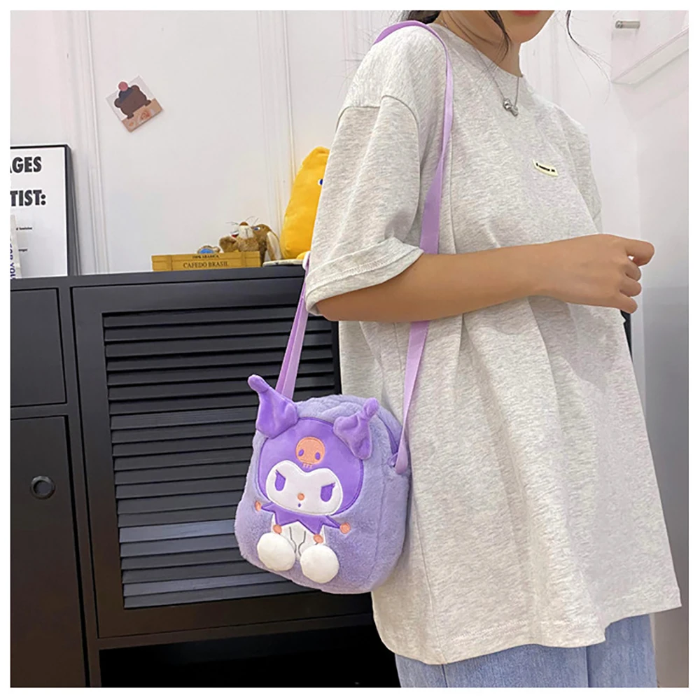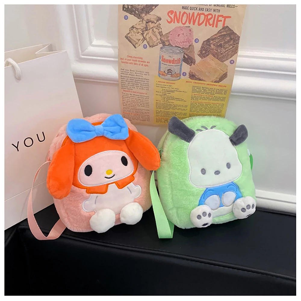 Kawaii Sanrio Plush Shoulder Bags Sanrioed Kuromi Hello Kitty My Melody Messenger Bag Soft Plush Small Square Bag For Girl Gifts