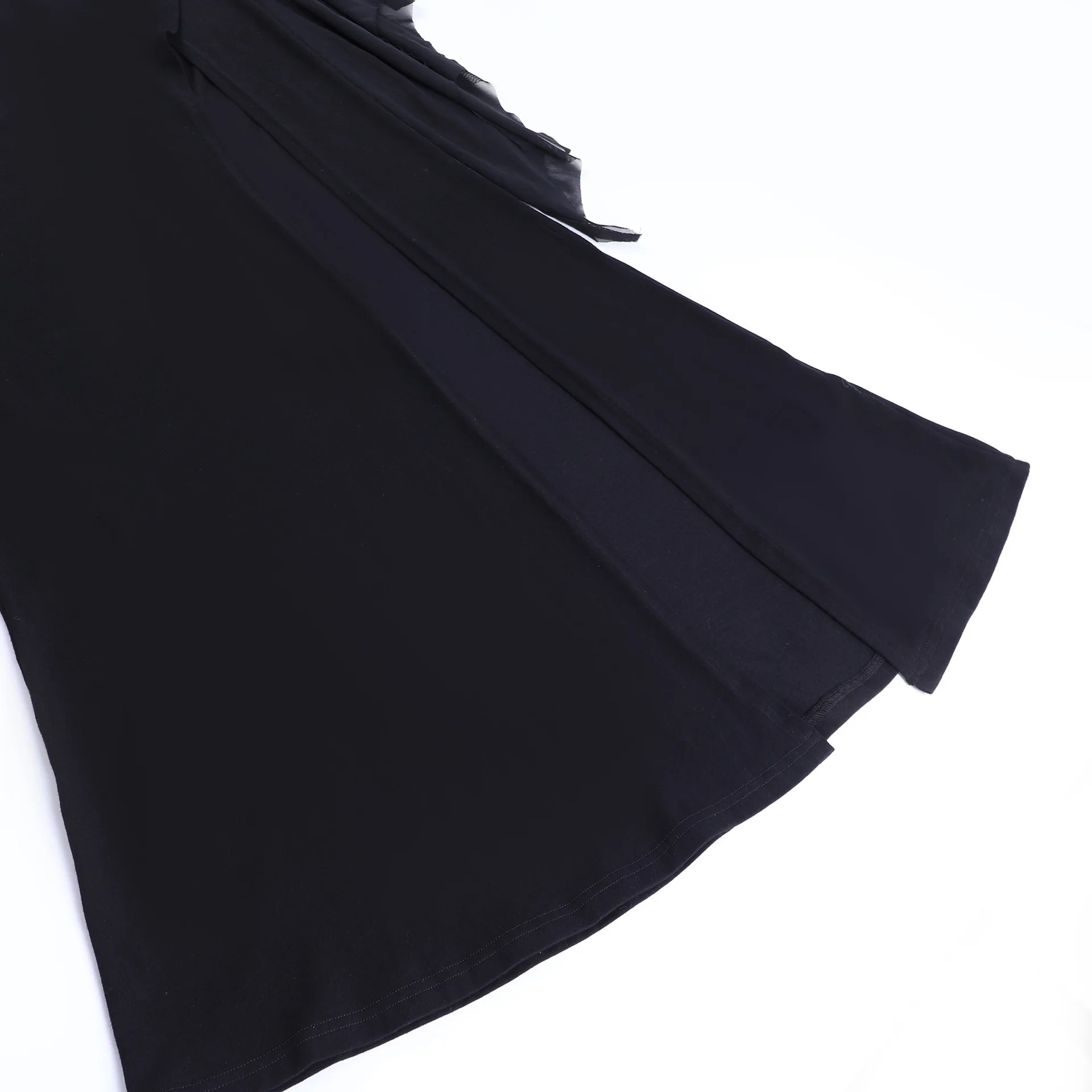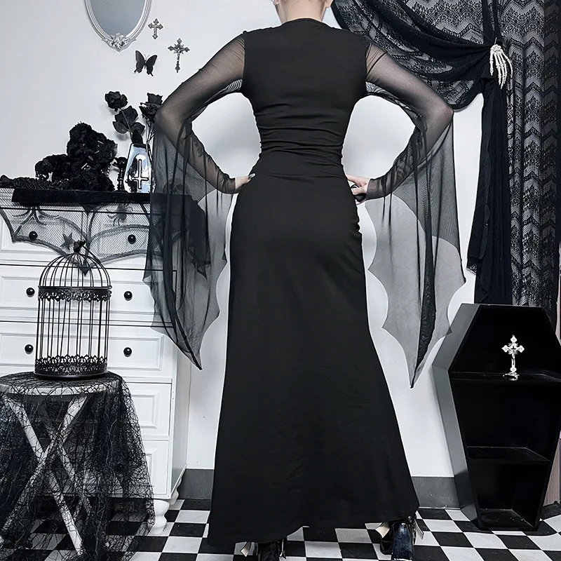 The batwing sleeve design makes this dress both stylish and comfortable, combining avant-garde and elegant styles, making it an ideal choice for special occasions or evening events. The gothic-inspired design elements, such as mesh splice and high split design, create a mysterious and alluring atmosphere that is sure to turn heads wherever you go.
