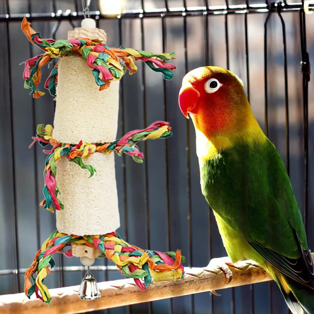 Bird Toys For Cage Biting Woven Straw Rope Toys With Bell Bird Cute Toys For Climbing Exploring Relaxing Parrot Entertainment To