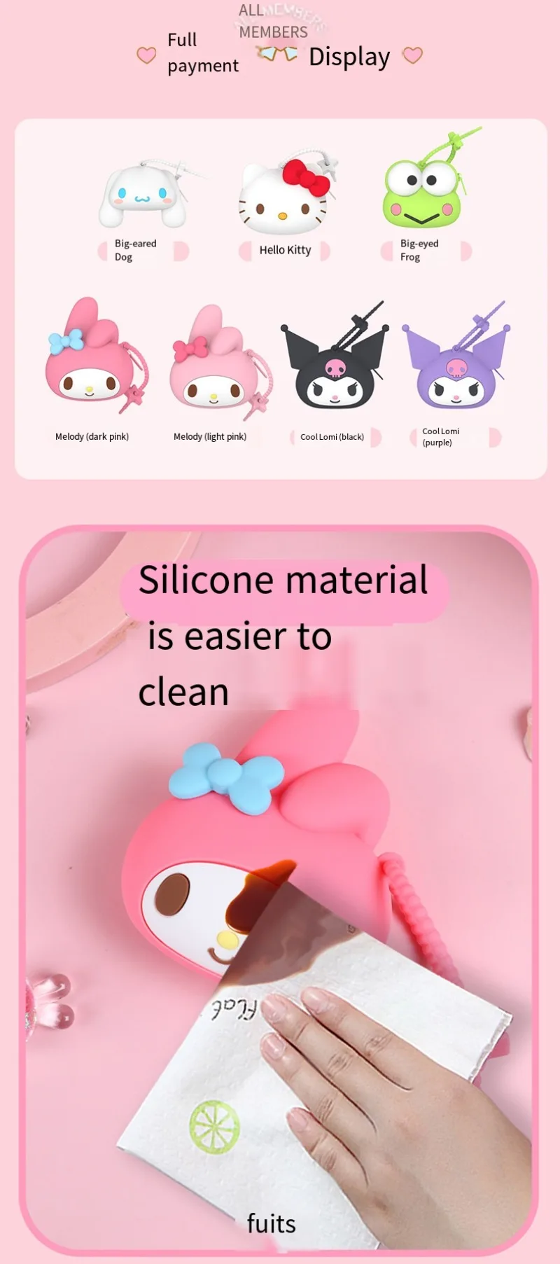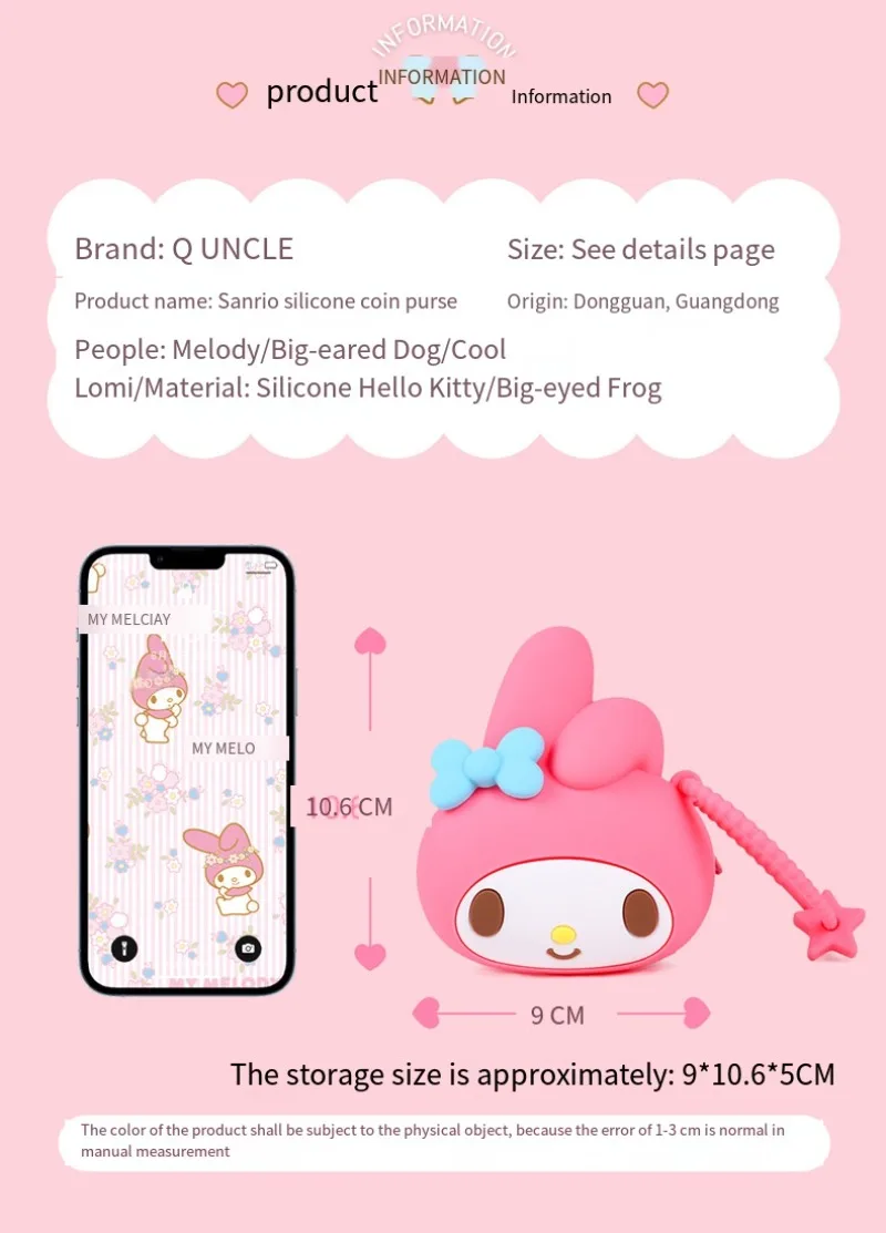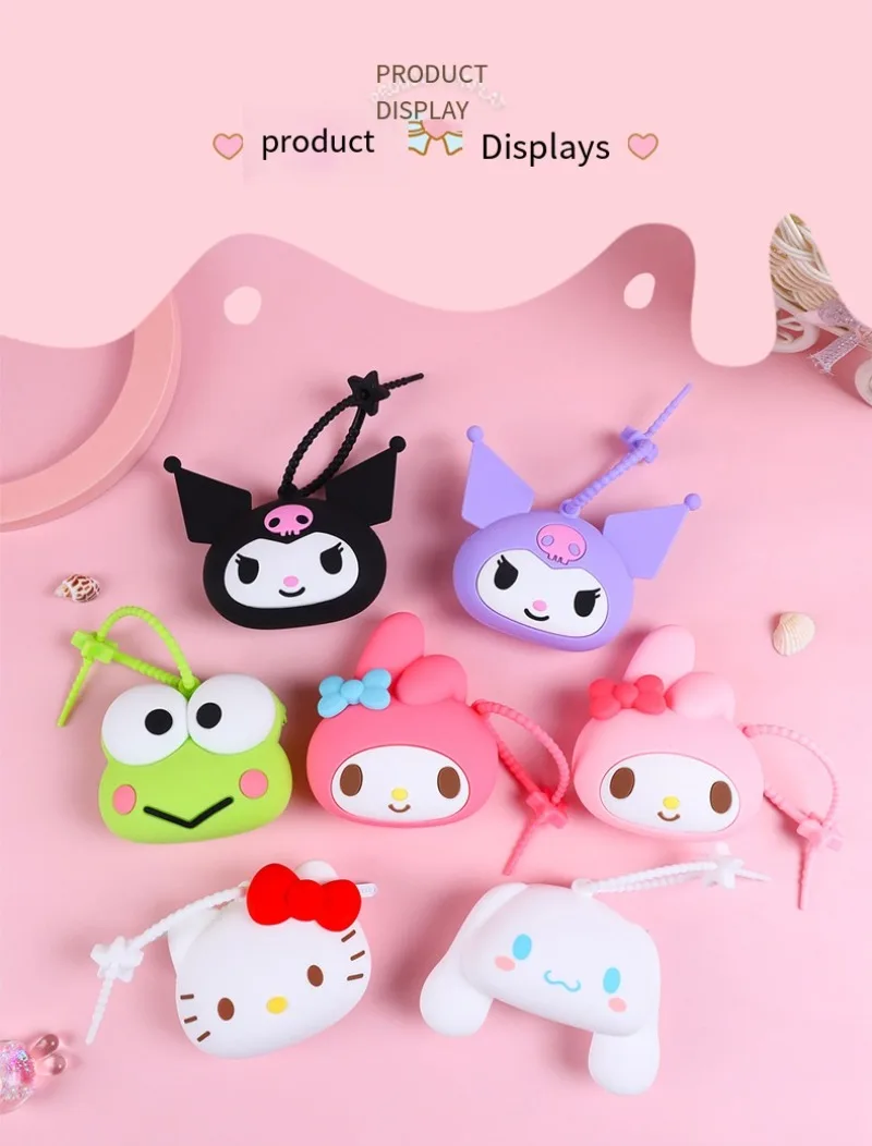 Kawaii Sanrio Hello Kitty Kuromi Mini Silicone Coin Purse Children Cute Caryoon My Melody Coin Purse Children Bag Girl Gifts