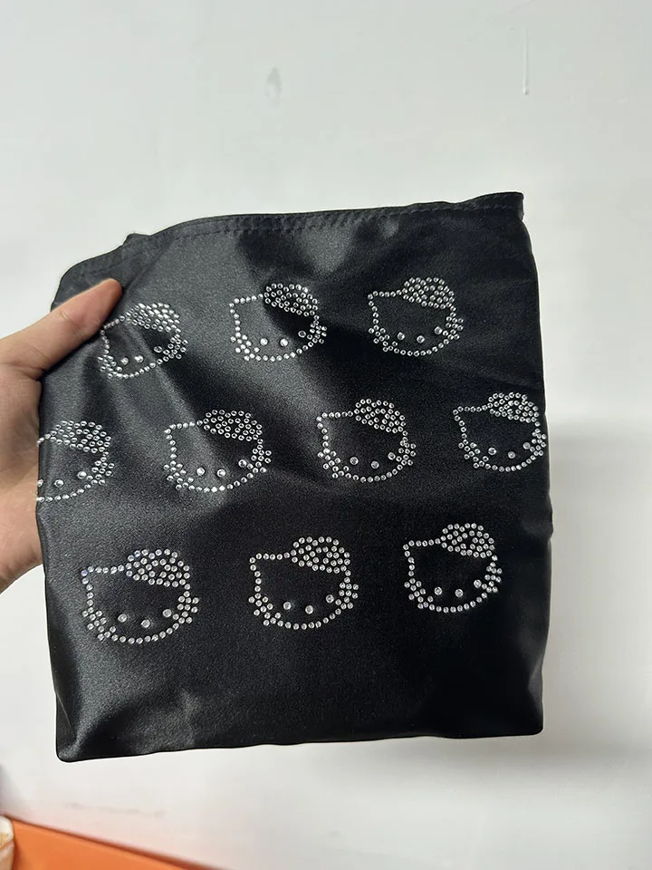 Kawaii Hello Kitty Women Canvas Shoulder Bag Rhinestones Handbag Eco Large CapacityShopping Bag Female Charmeuse Cute Tote Bag