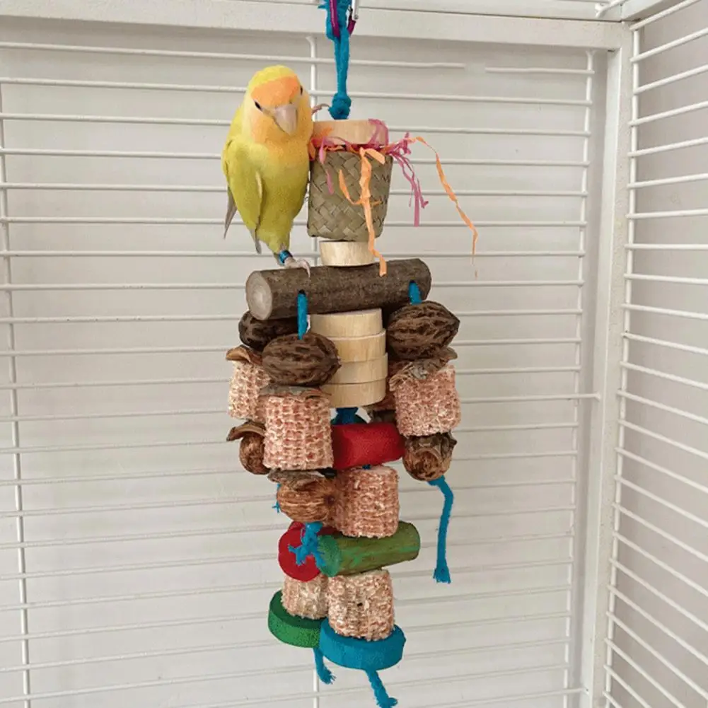 Made from natural materials such as corncobs, corn husks, bark, and nuts, this toy is completely safe for your bird to bite and play with.