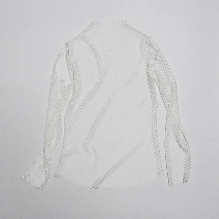 Women Fishnet Mesh See-through Black shirts Long Sleeve Tee Tops