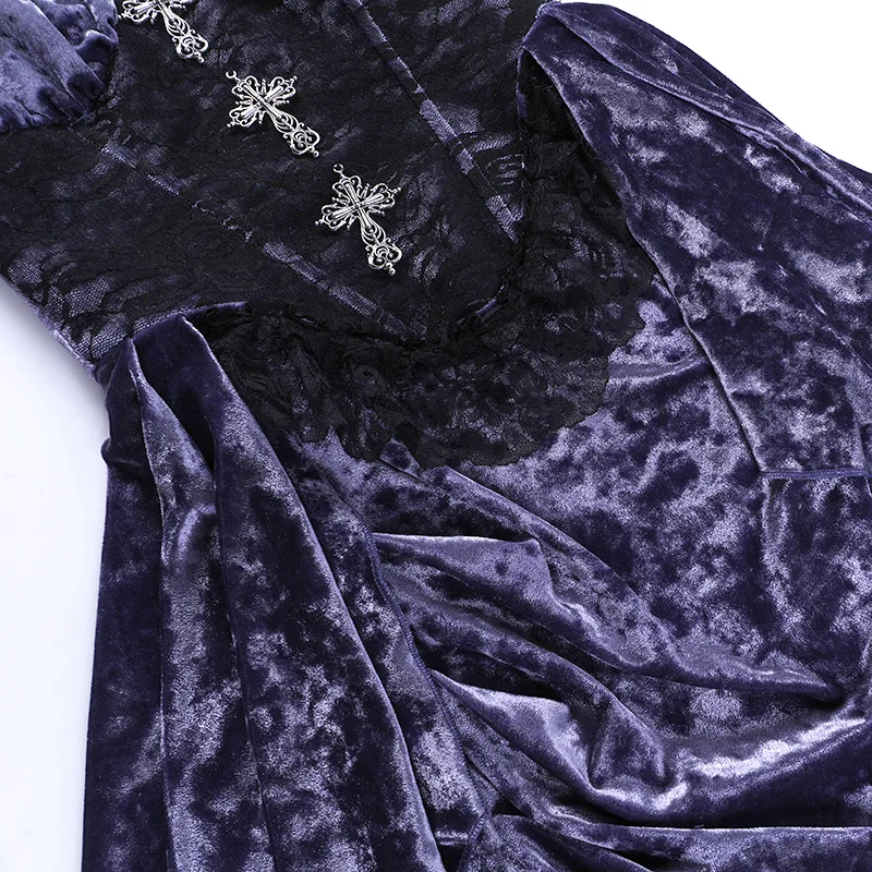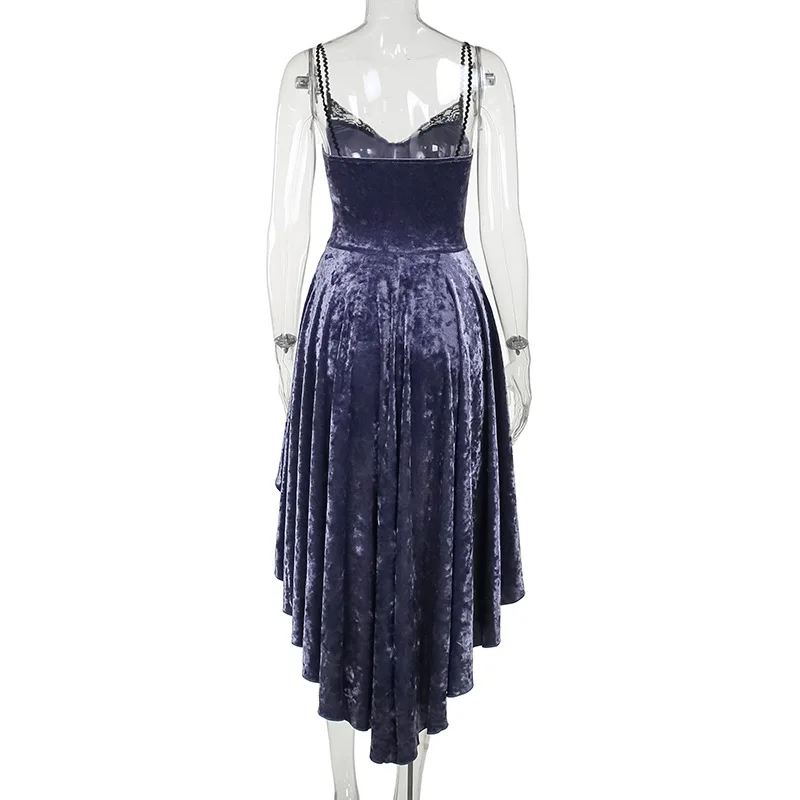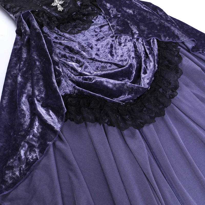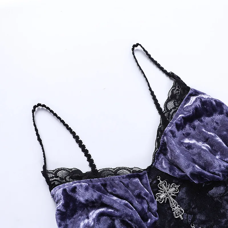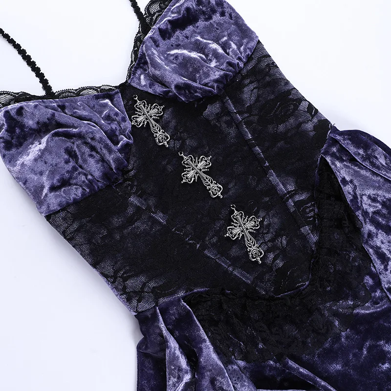 Whether you're attending a formal event, a romantic dinner, or a gothic-themed party, the Gothic Velvet A-line Sling Lace Hem Dress is sure to make a statement. Its unique combination of fabrics and design elements creates a captivating and mysterious aura, perfect for those who want to stand out from the crowd. Embrace the gothic style with this beautiful dress and exude sophistication and charm wherever you go.