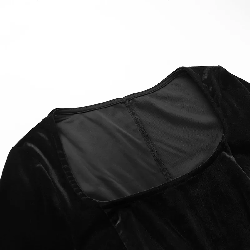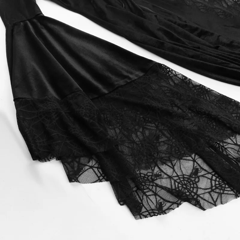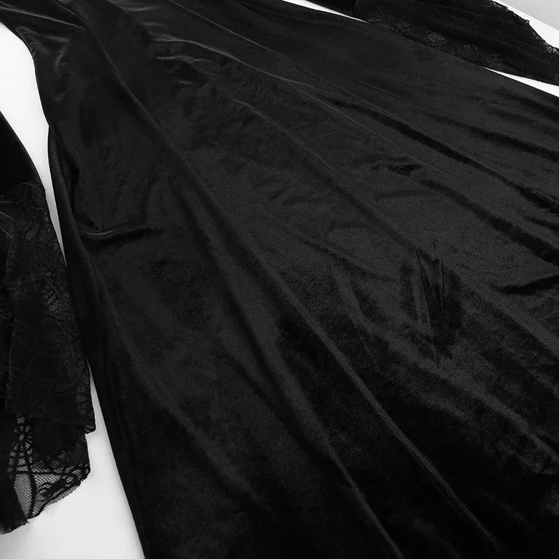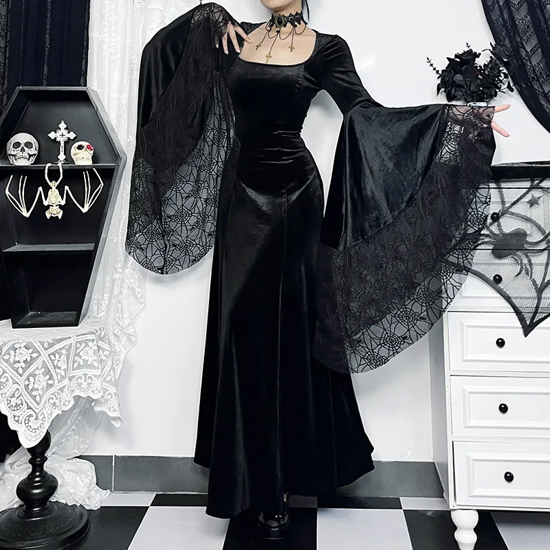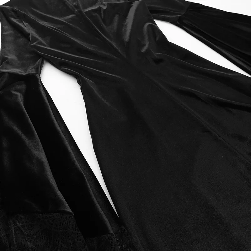 Crafted from high-quality materials, this dress is both comfortable and stylish. The black color palette ensures versatility and timeless elegance, making it suitable for various occasions and events. Whether you're attending a gothic-themed party or a formal dinner, this dress is sure to make a statement.