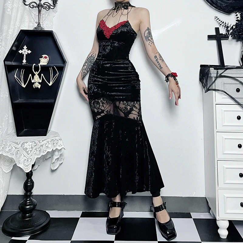 With its romantic and mysterious Gothic aesthetic, the Gothic Contrast Lace Halter Dress is the perfect choice for expressing your personality and confidence. Wear it to unleash your inner sexy and independence, become the center of attention, and showcase your unique charm and style.