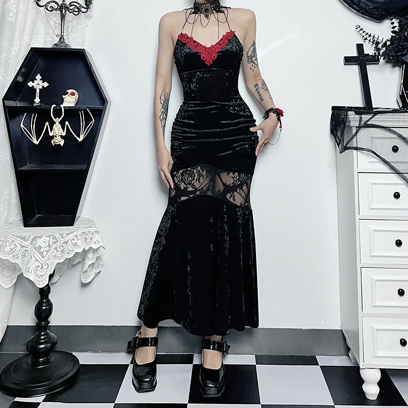 Gothic Contrast Lace Halter Dress