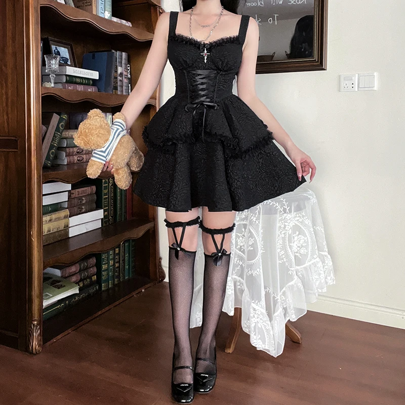 Crafted from high-quality materials, this dress is not only beautiful but also comfortable to wear. The intricate lace detailing and ruffle trims add texture and visual interest to the garment, making it a standout piece in your wardrobe. Whether you're attending a ball, a masquerade party, or a gothic wedding, this dress is sure to make a lasting impression.
