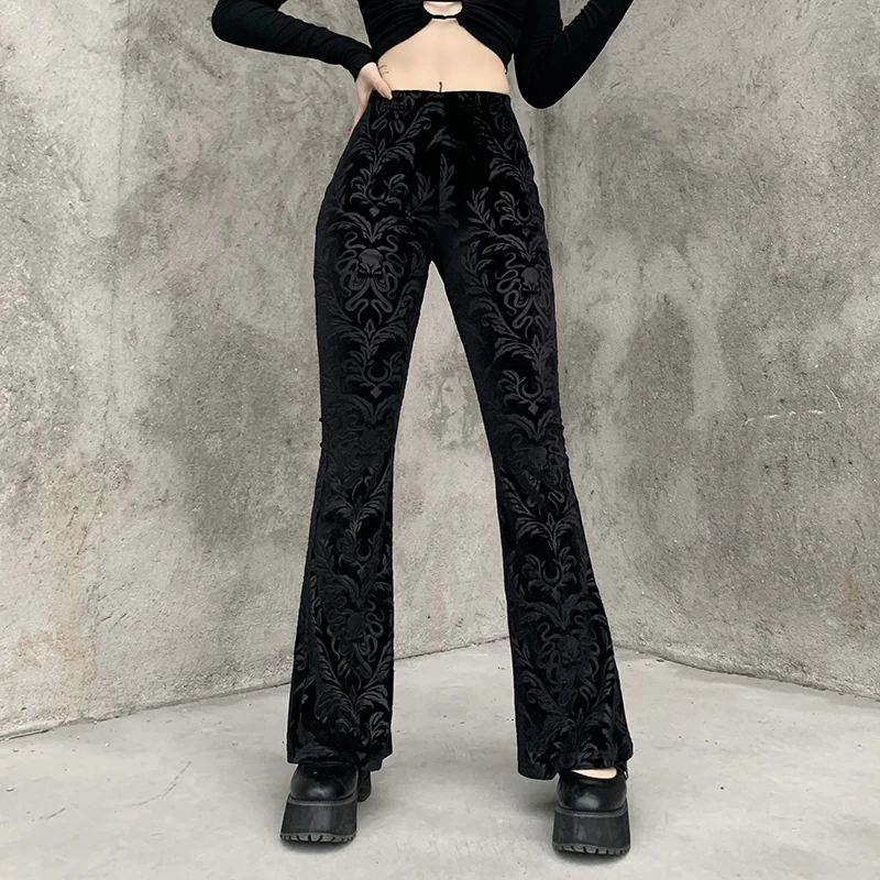 Showcase your individual style, challenge traditional fashion norms, and put on the Women's Gothic Embossed Design Flared Pants to exude confidence and charm. These pants will add a unique charm to your everyday outfits, showcasing a distinct understanding and taste for fashion.