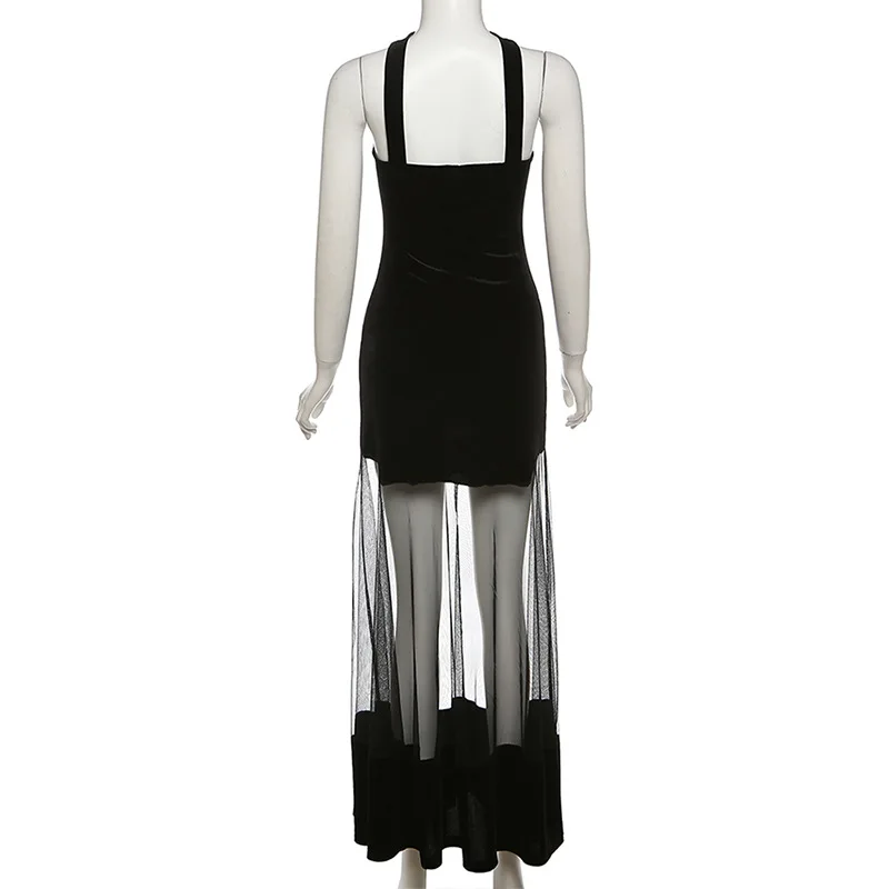 Gothic Velvet Elegant Gothic Halter Mesh Patchwork Backless Women Dress