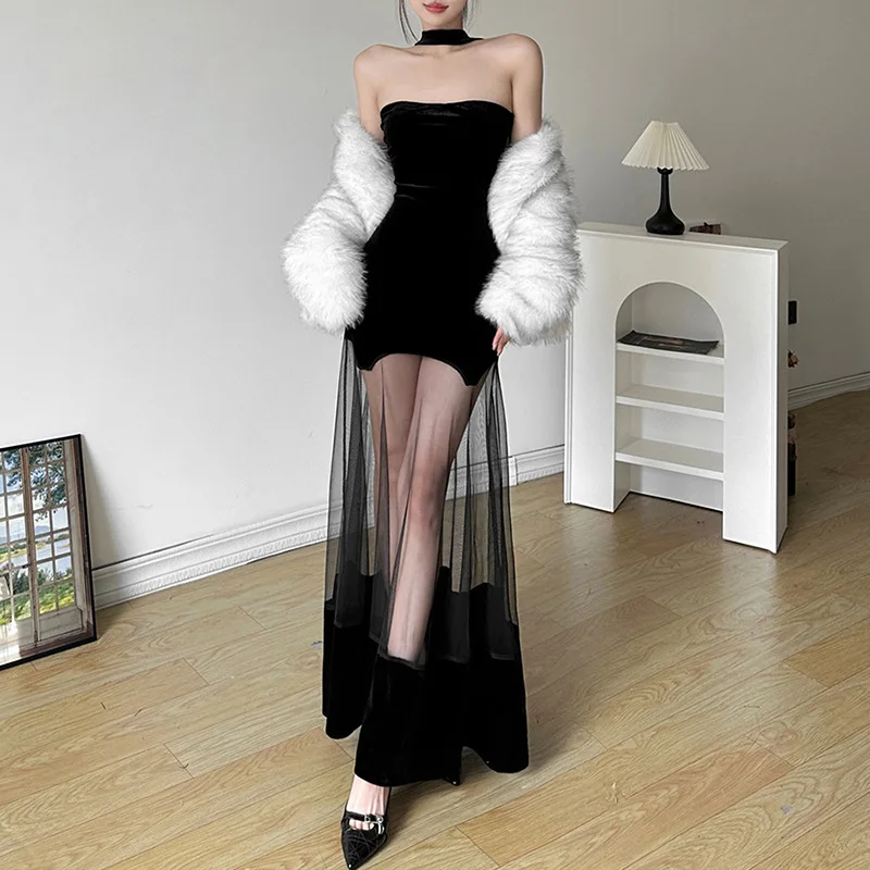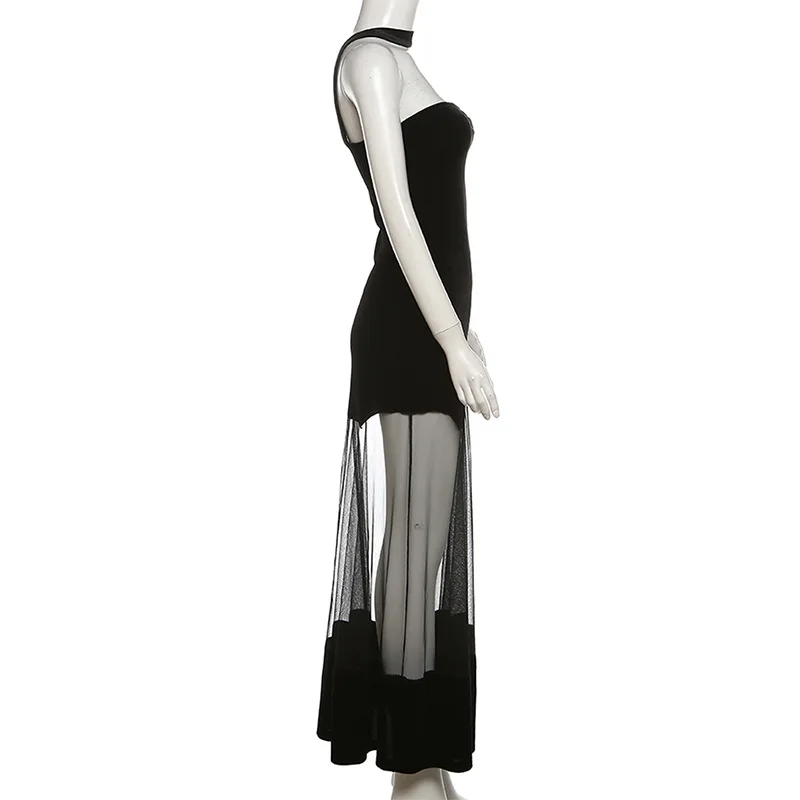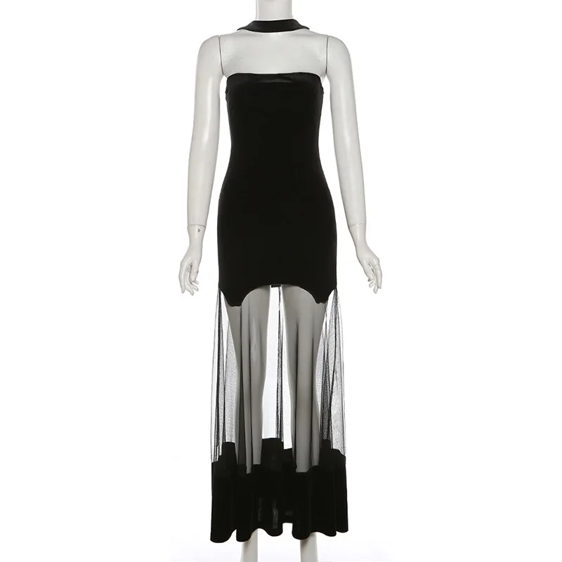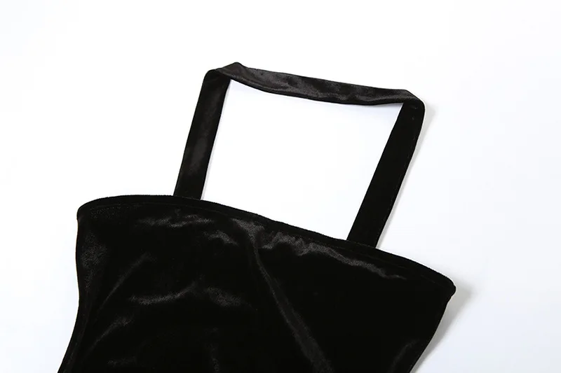 With its unique combination of gothic aesthetics and elegant design, our Gothic Velvet Elegant Halter Mesh Patchwork Backless Women Dress is a must-have for those who want to showcase their individual style with sophistication and flair.