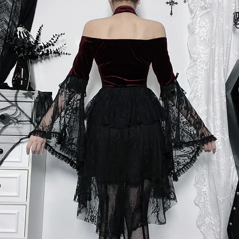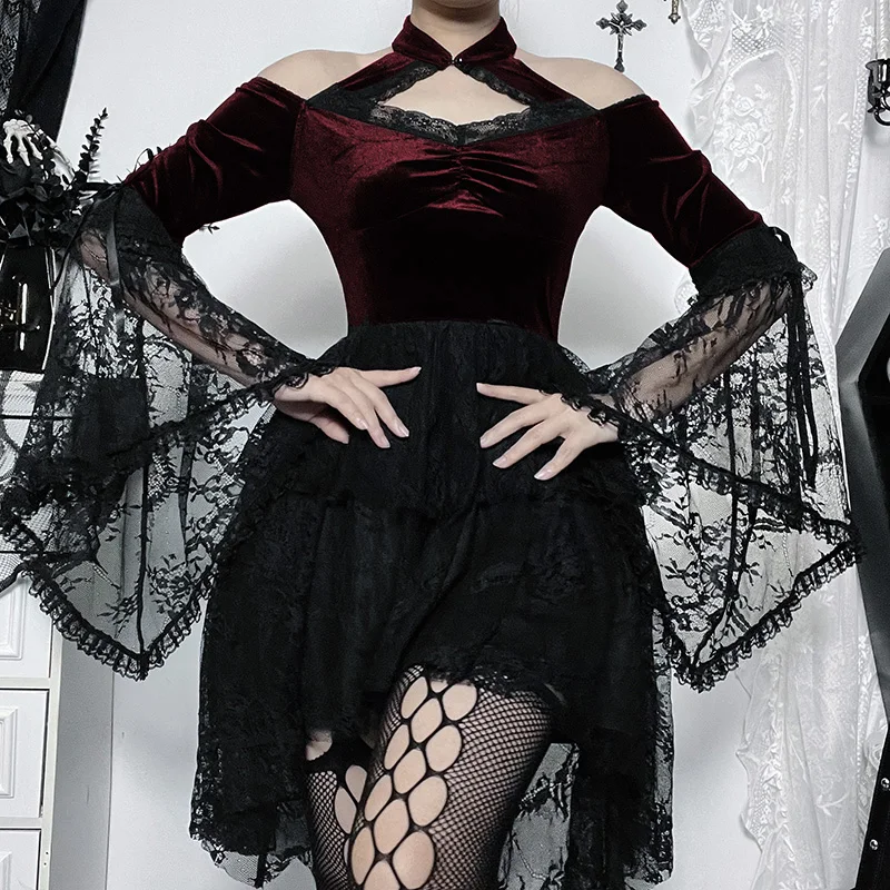 Crafted from high-quality materials, this dress offers comfort and style in one flattering silhouette. The contrast lace detailing creates a beautiful and eye-catching visual impact, while the flare sleeves add a playful and trendy element to the overall design. Whether worn for a night out, a special event, or a romantic dinner, this dress is sure to make a statement and turn heads wherever you go.