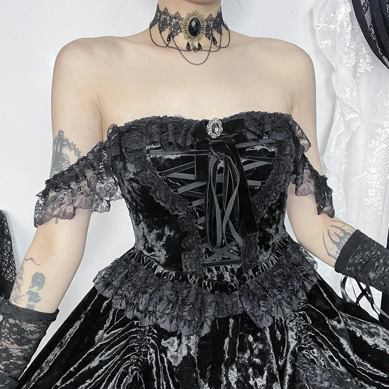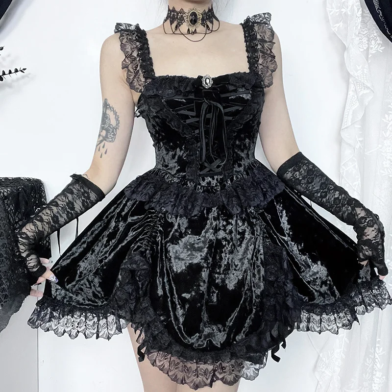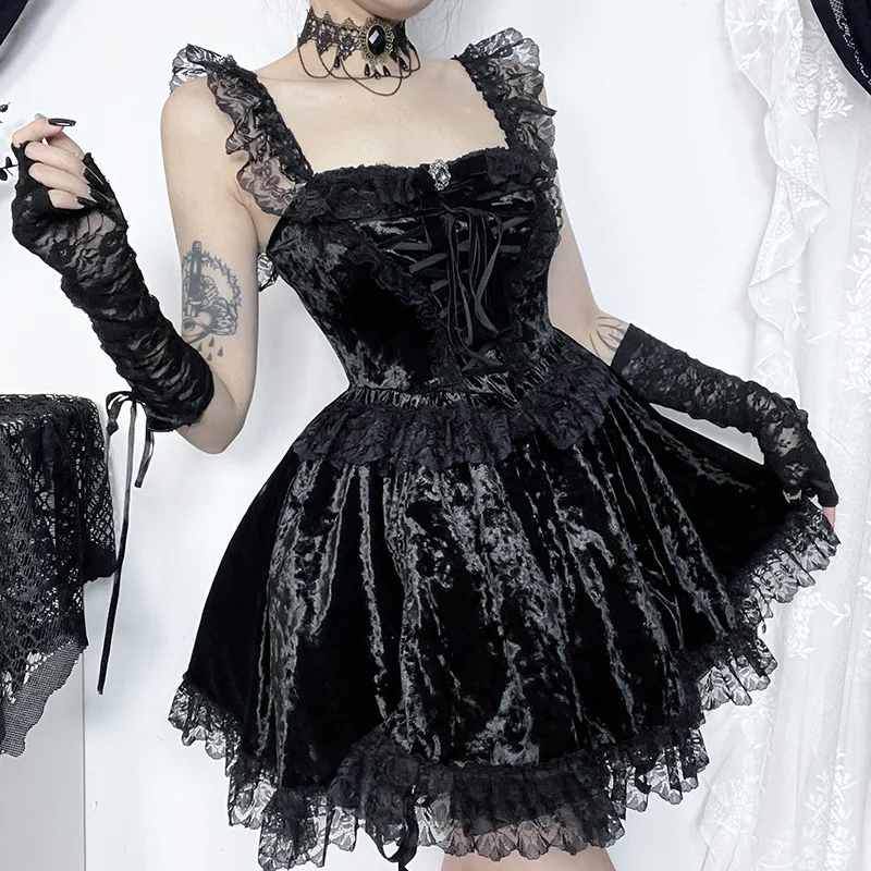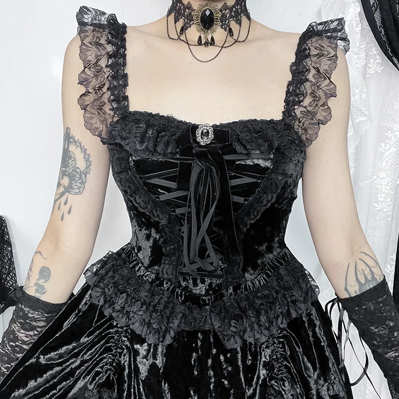 This dress is suitable for various occasions, whether you're attending a party or going about your daily life, it will showcase your taste and fashion sense. The contrasting lace design adds visual impact to the entire outfit, while the flare sleeves design allows you to exude a charming aura. Whether you want to showcase your fashion attitude or pursue a personalized style, this gothic dress is perfect for making a statement.