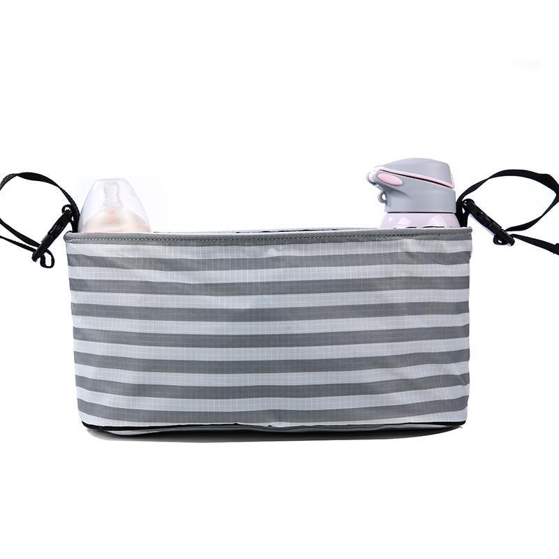 Gender:Unisex Material: Polyester Size:31*15.8 cm Applicable scene:Tabletop Storage, Kitchen Storage, Travel Storage, Bathroom Storage, Makeup Storage, Living Room Storage,Baby carriage Product feature: It's separated design stroller diaper bag ,main bag is for baby's water bottle ,milk bottle ,nappy,toys,mummy's phone etc ,main bag can hanging onto stroller ,cart ,wheelchair etc