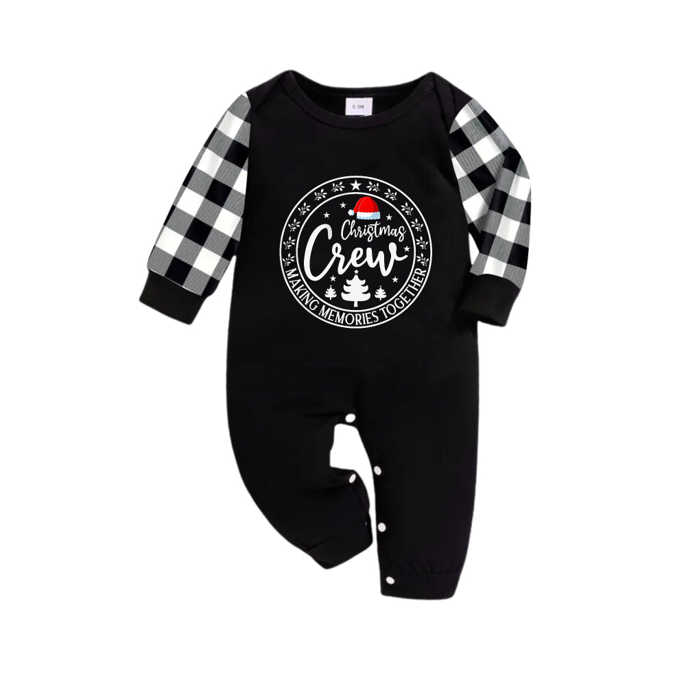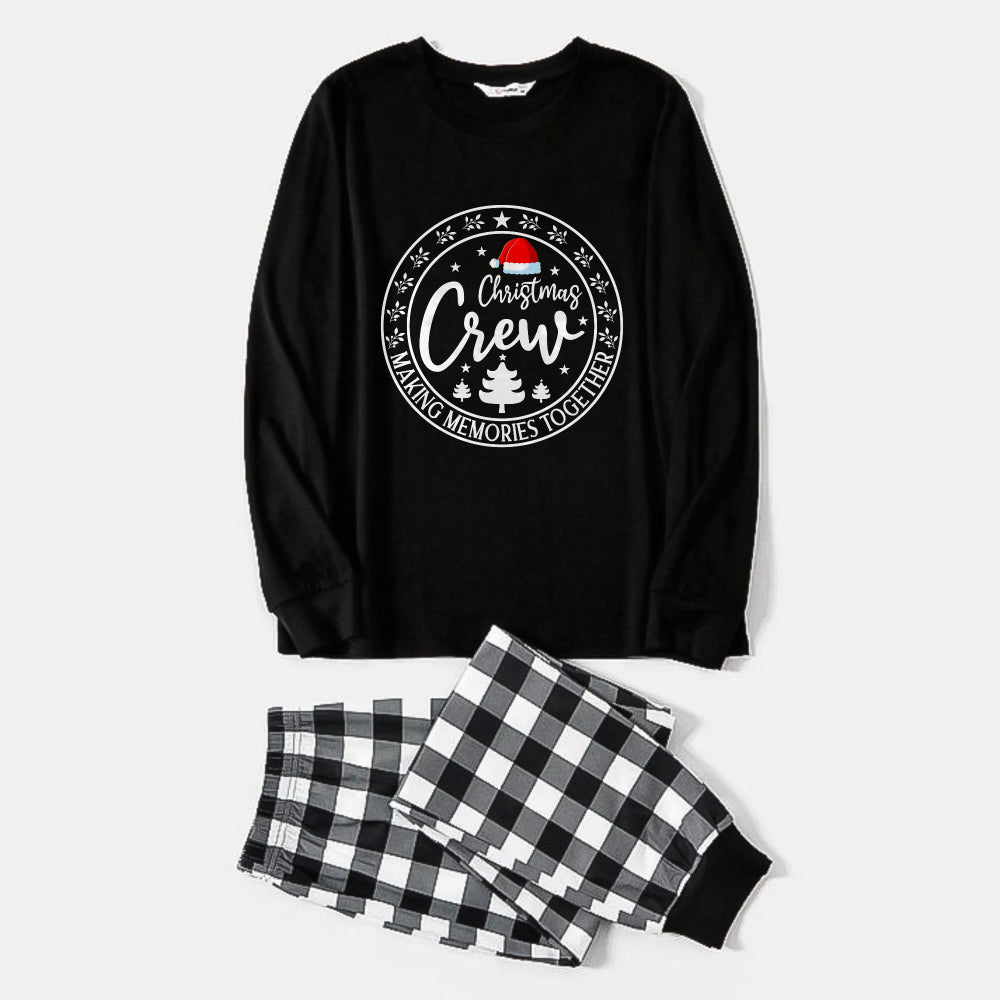 Black and White Plaid Christmas Pajamas Set With Santa Hat and "Making Memories Together" Text Print