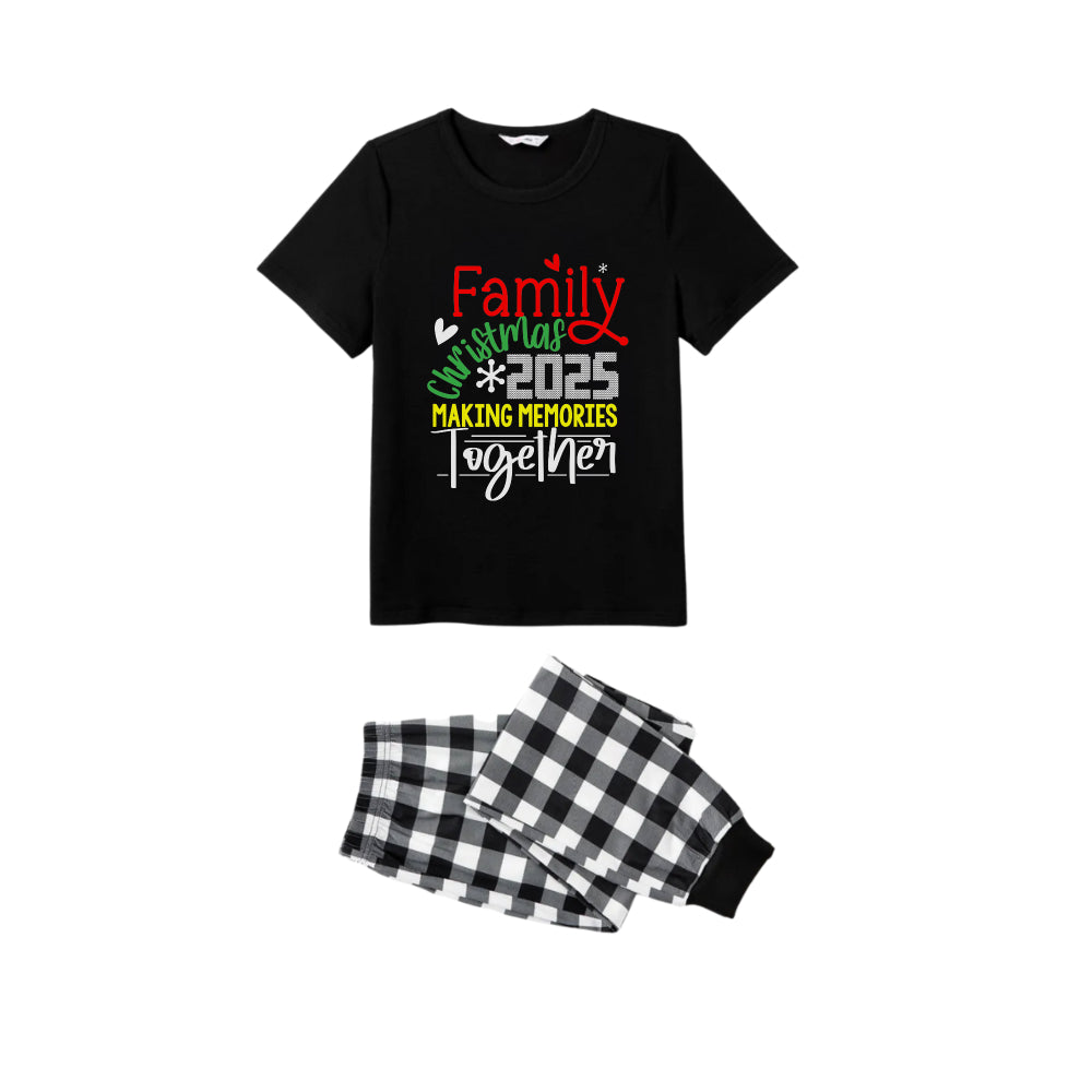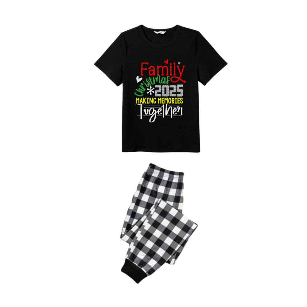 Black and White Plaid Short Sleeve Christmas Pajamas Set Featuring Christmas Cheer Text Prints