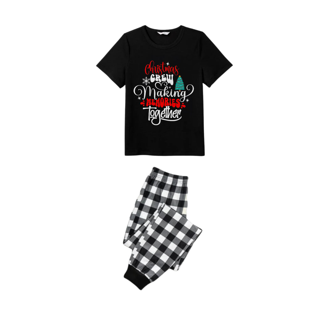 Black and White Plaid Short Sleeve Christmas Pajamas Set With Cute Text Print