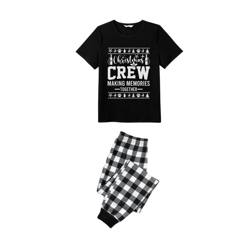 Black and White Plaid Short Sleeve Christmas Pajamas Set With Holiday Quotes Print