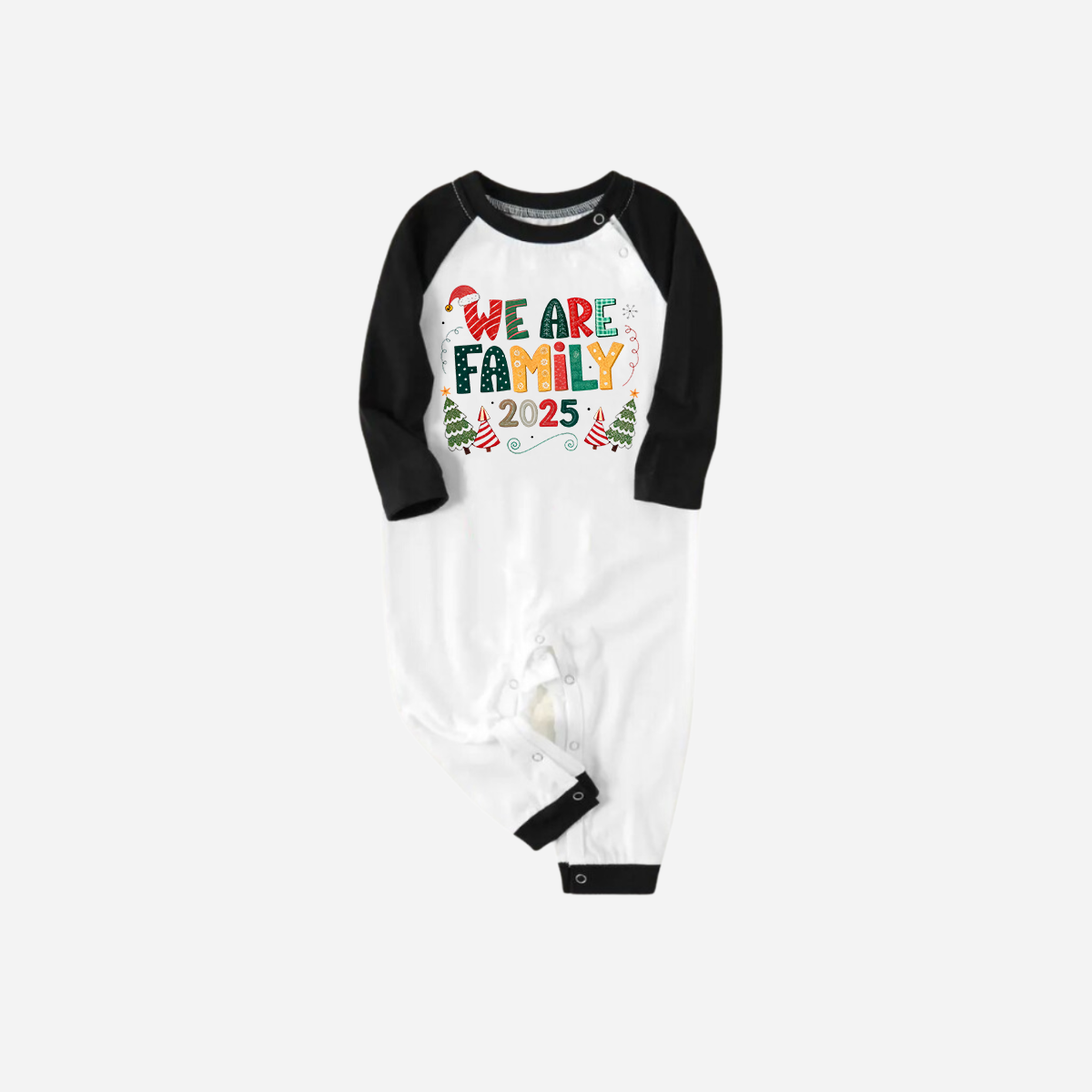 Black Raglan Top Green Plaid Christmas Pajamas Set With "We are Family" Colorful Text Print