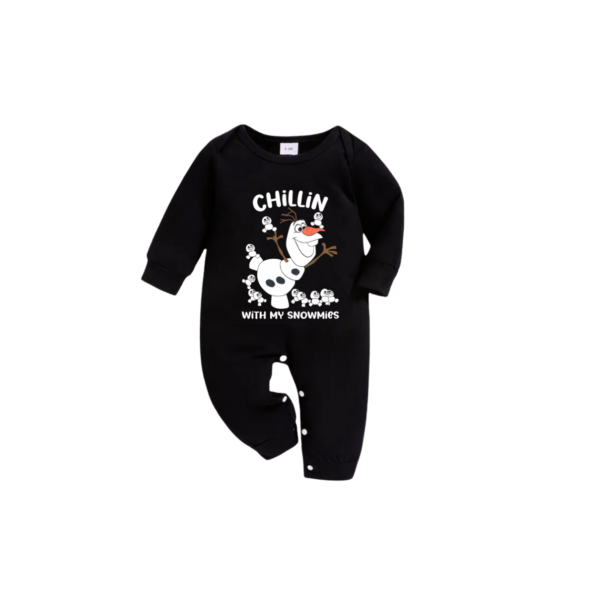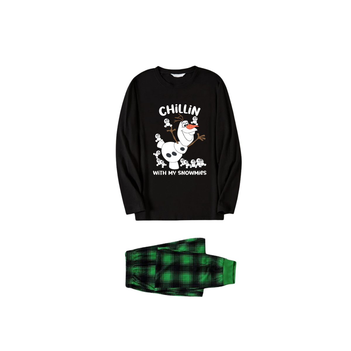 Black Top and Green Plaid Pants Christmas Pajamas Set With Snowman & "Chillin With My Snowmies" Print