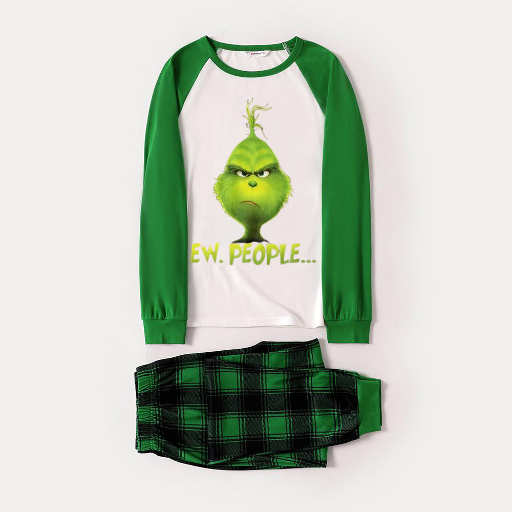 Christmas Cute Cartoon And 'Ew.People...' Letter Print Family Matching Raglan Long-sleeve Pajamas Sets