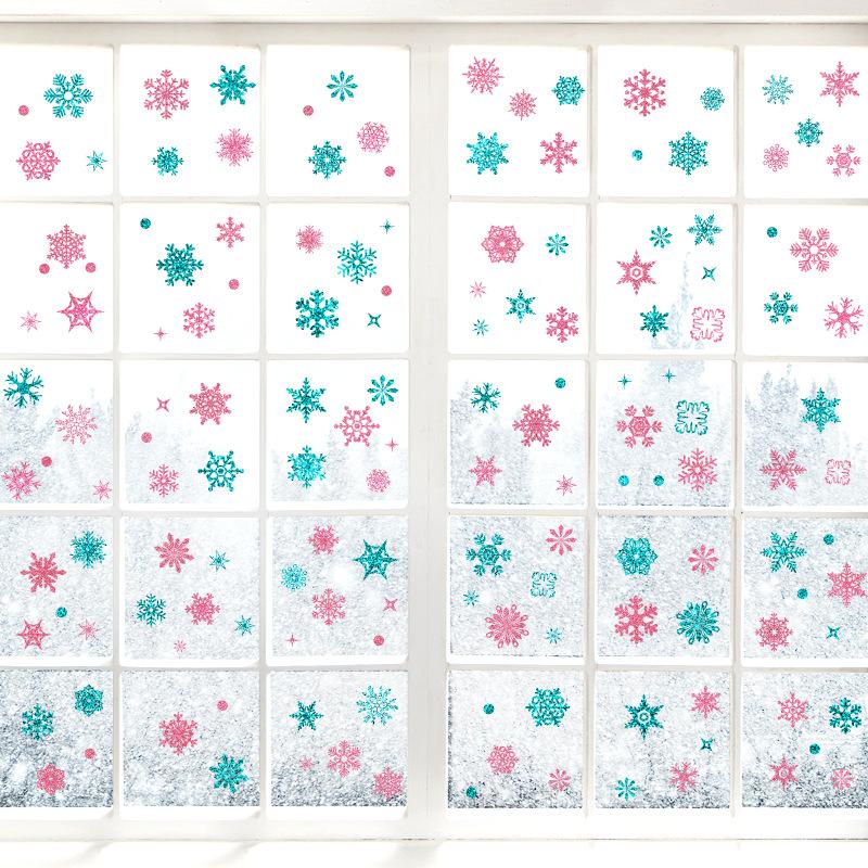 Christmas Window Decoration Snowflake Sprinkled Gold Electrostatic Glass/Wall Stickers 9PCS