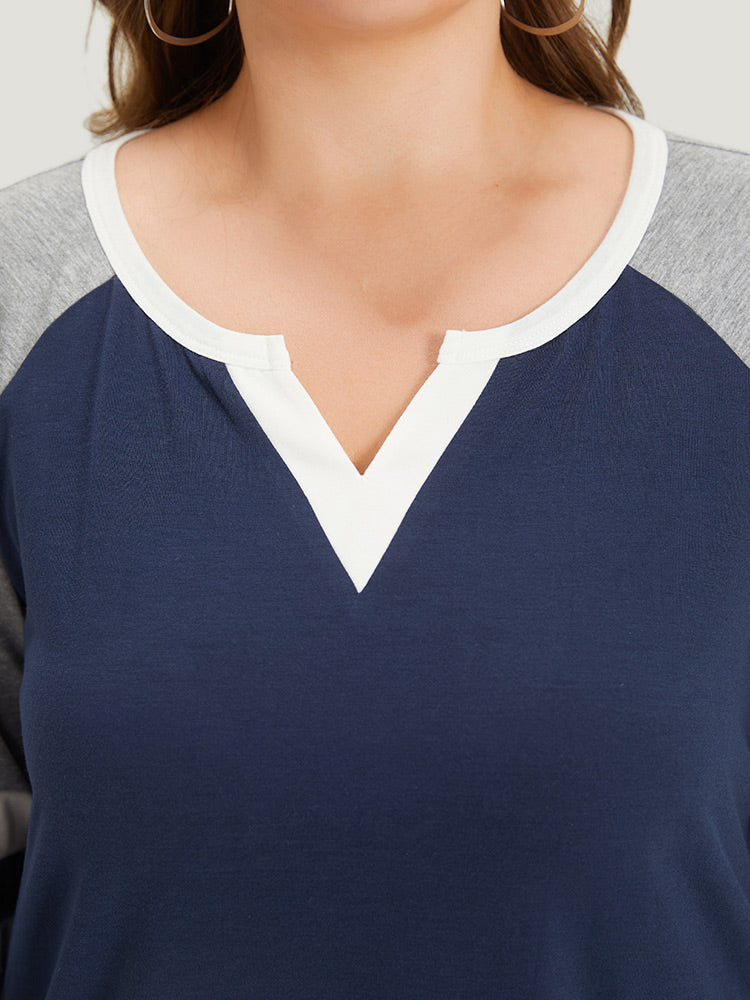 Colorblock Contrast Notched Patchwork Raglan Sleeve T-shirt1006tees
