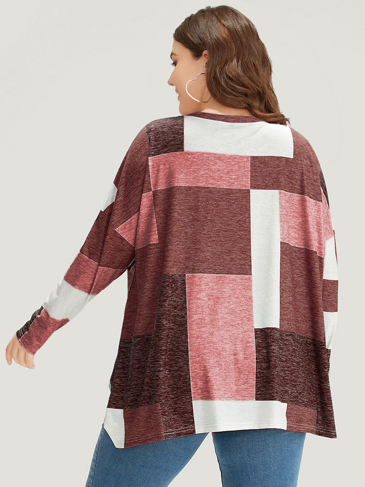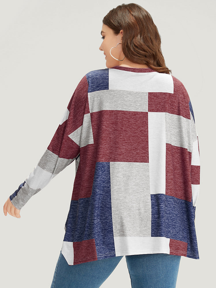Colorblock Contrast Round Neck Dolman Sleeve T-shirt1006tees