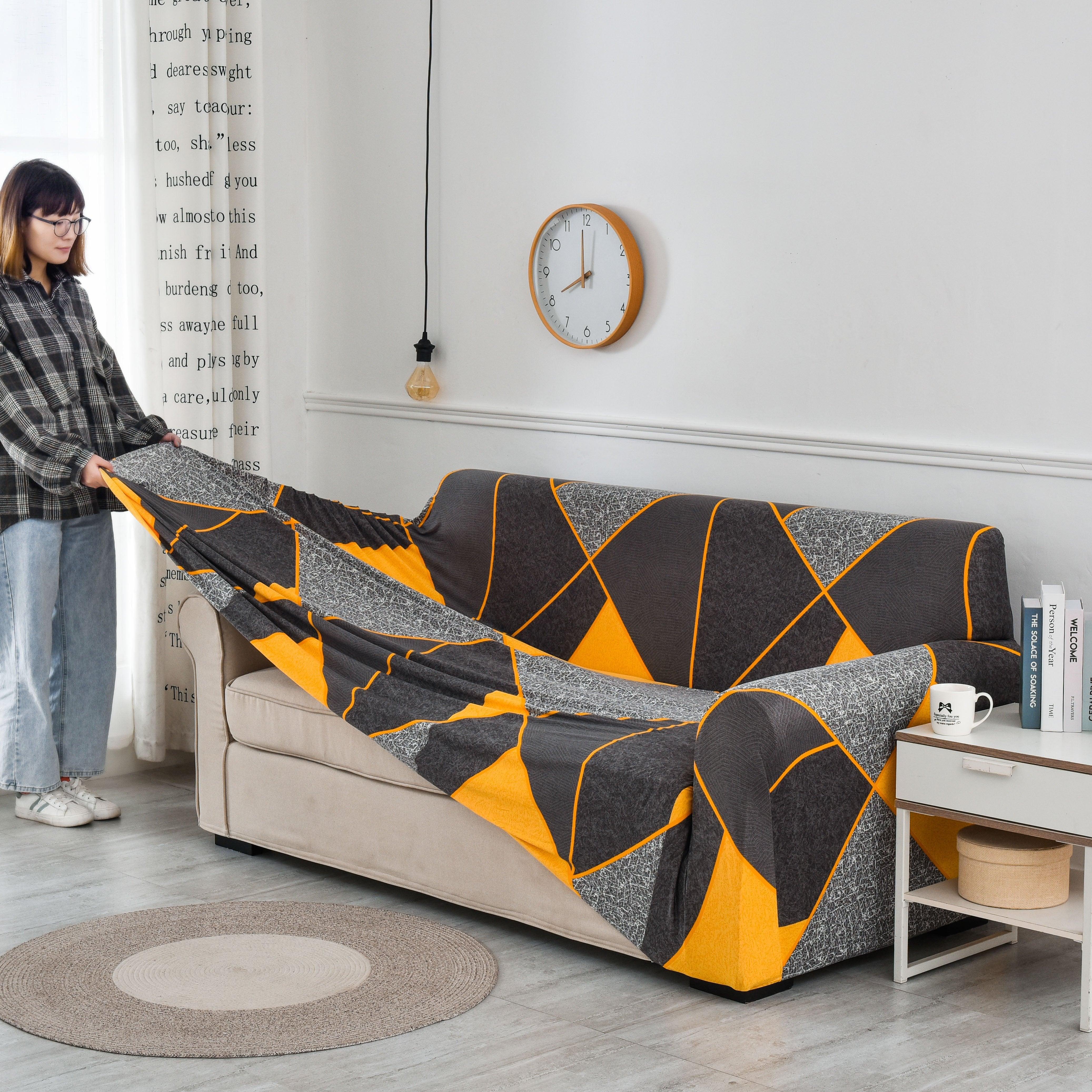 Product Introduction: Our elastic sofa cover, available for single, double, triple, and quadruple sofas, is made from milk silk with full coverage and anti-slip features. It offers a snug fit, is environmentally friendly, soft, comfortable, and has excellent color fastness. The anti-slip protection strips firmly secure the sofa cover, ensuring it stays in place without slipping. Simple to install, it can be directly draped over the sofa and secured with straps. Operating Instructions: Step 1: Flip the sofa cover over and align the back seams with the sides of the sofa, then pull down. Step 2: Locate the side seams, drape them along the armrests, keeping it loose at first, then tidy up. Step 3: Insert the anti-slip bars, starting from the center while ensuring the fabric remains smooth. Begin with the center and move to the sides. Step 4: Tuck in excess fabric underneath the sofa, use the attached white strings to tie them together at the bottom. Common Sofa Measurements and Usage: For distances between 35-51", choose a single seat cover. For distances between 52-69", opt for a double seat cover. For distances between 70-87", go for a three-seat cover. For distances between 88-118", select a four-seat cover.