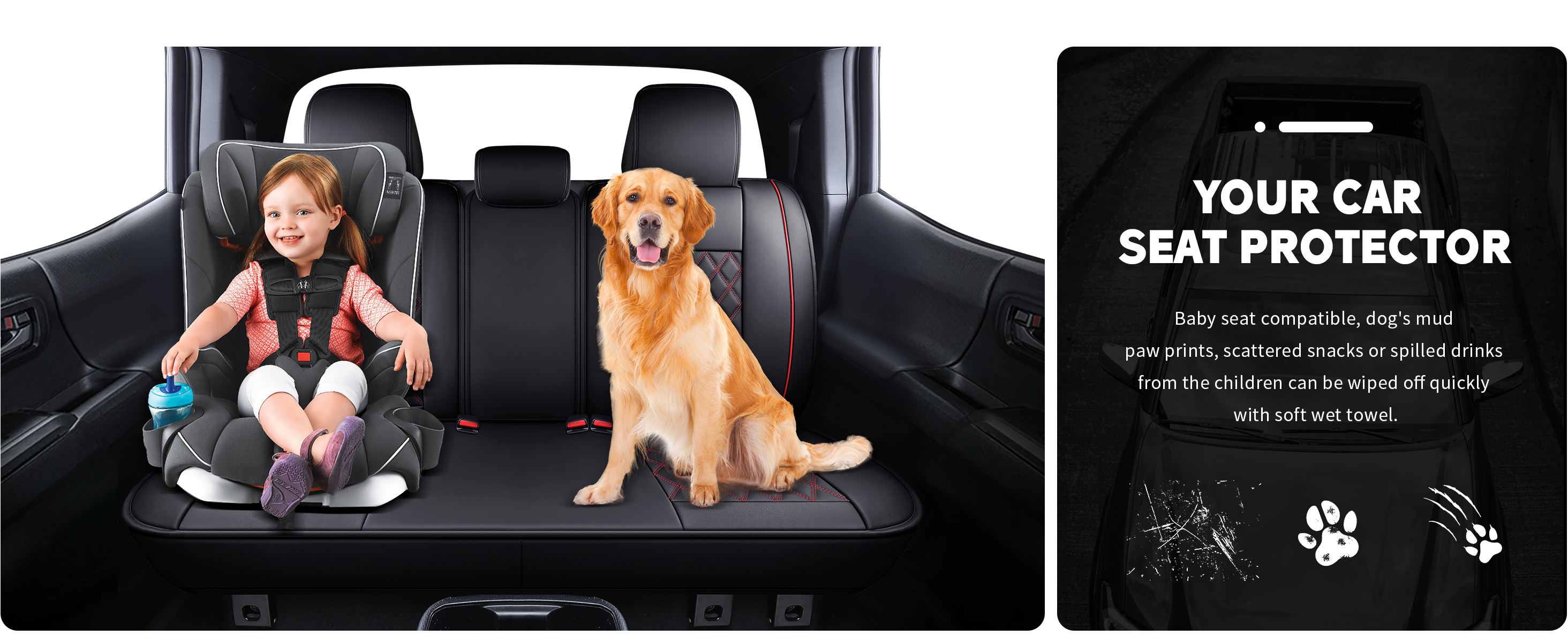 - Soft,durable and waterproof premium faux leather,the dog claws will not leave scratch on the faux leather.Select high-quality wear-resistant, waterproof, anti-aging, anti-wrinkle leather fabrics, and an all-inclusive design, to protect the original car seat.
