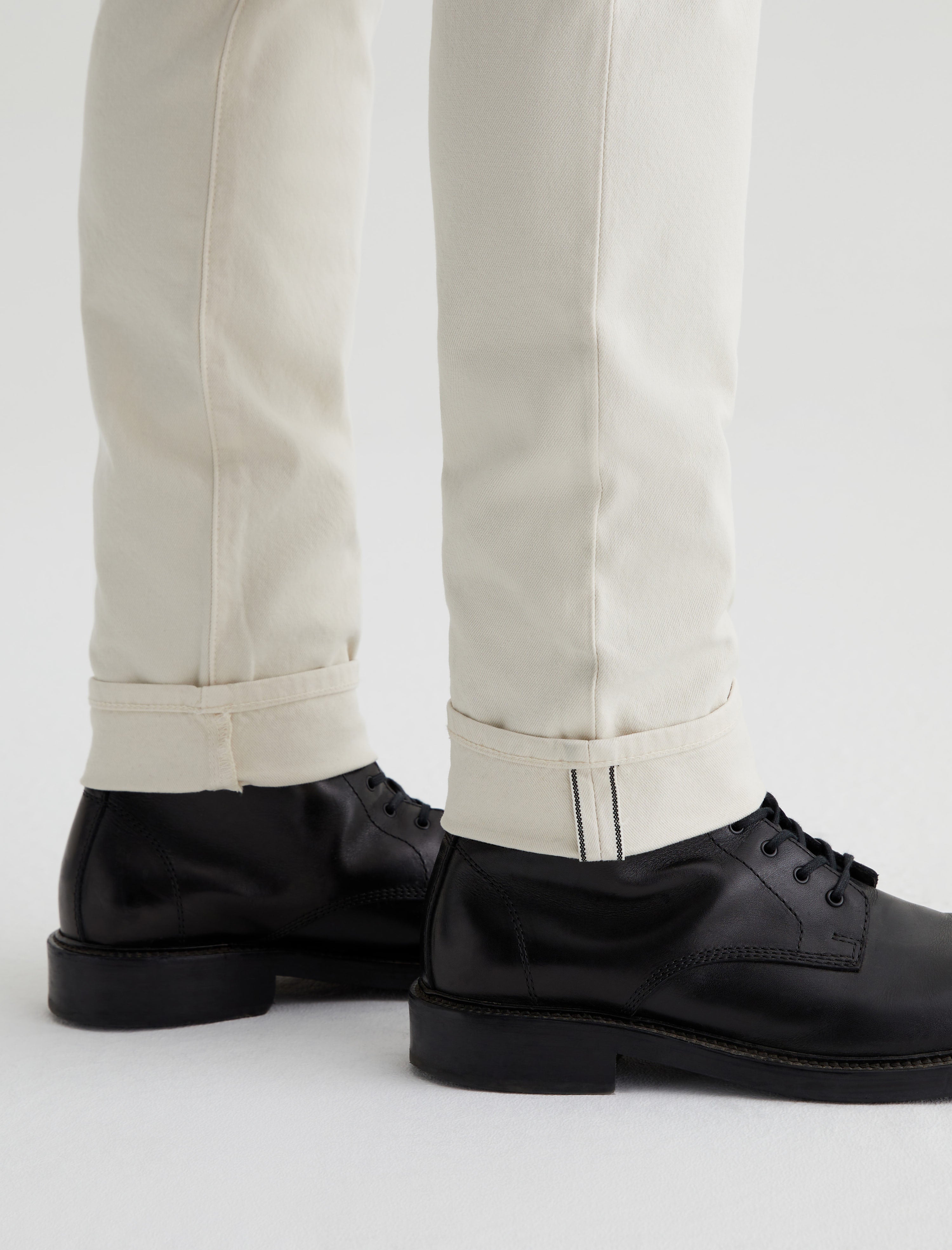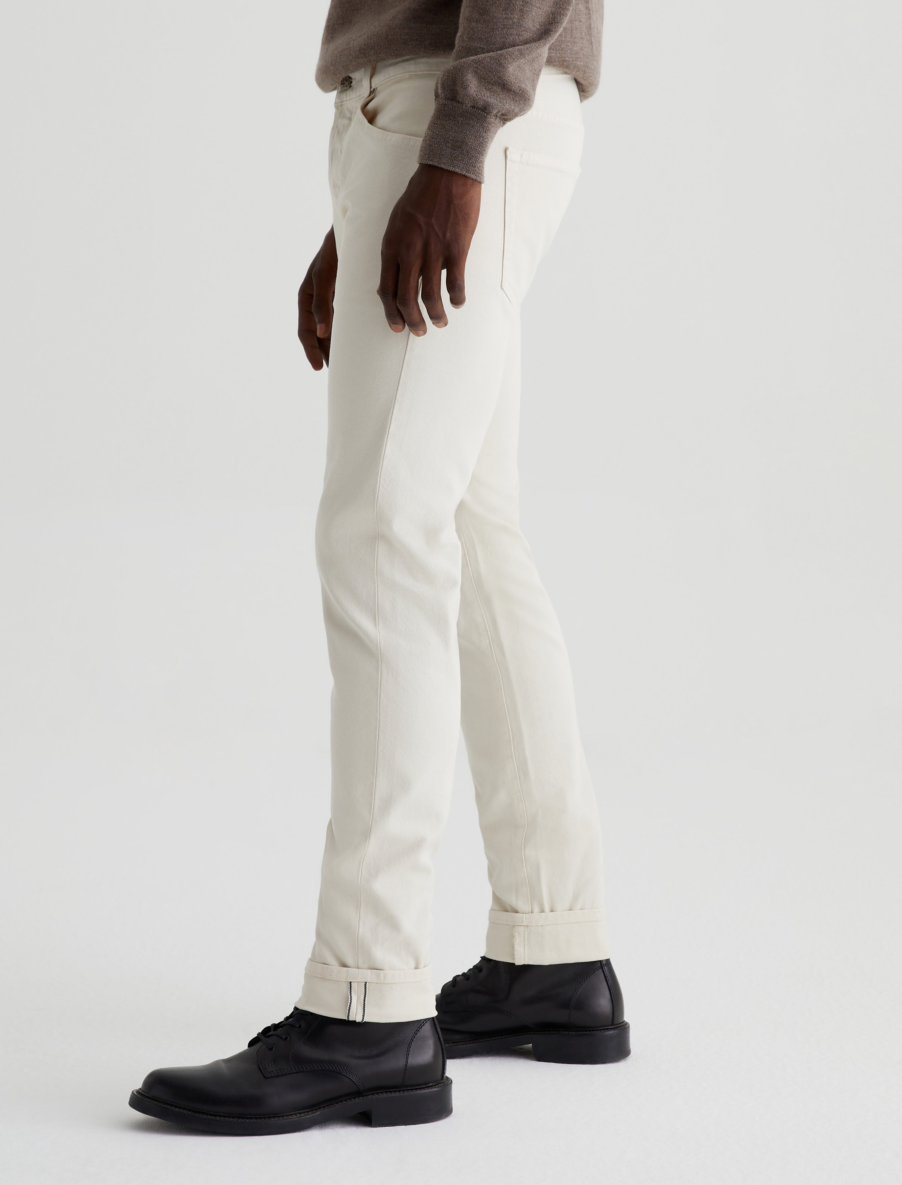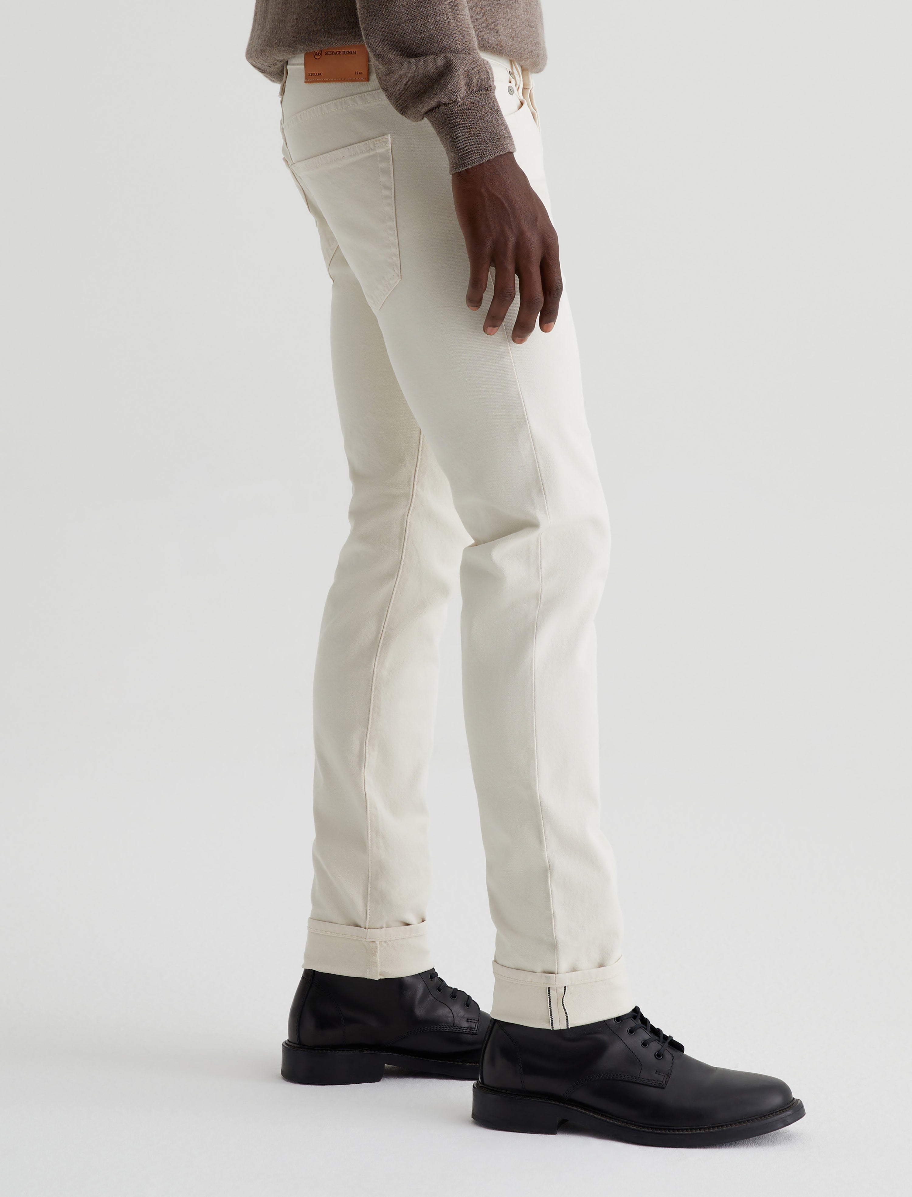 Dylan is a slim skinny jean for men features midweight 10 oz. Stretch Selvage Denim from Japan's Kurabo Industries. Dylan is cut slim through the thighs and tapered at the leg opening. Featuring a comfortable 2x1 right-hand twill construction with stretch woven in, the fabric has a clean twill line character and a black ticker along the self-finished edge.