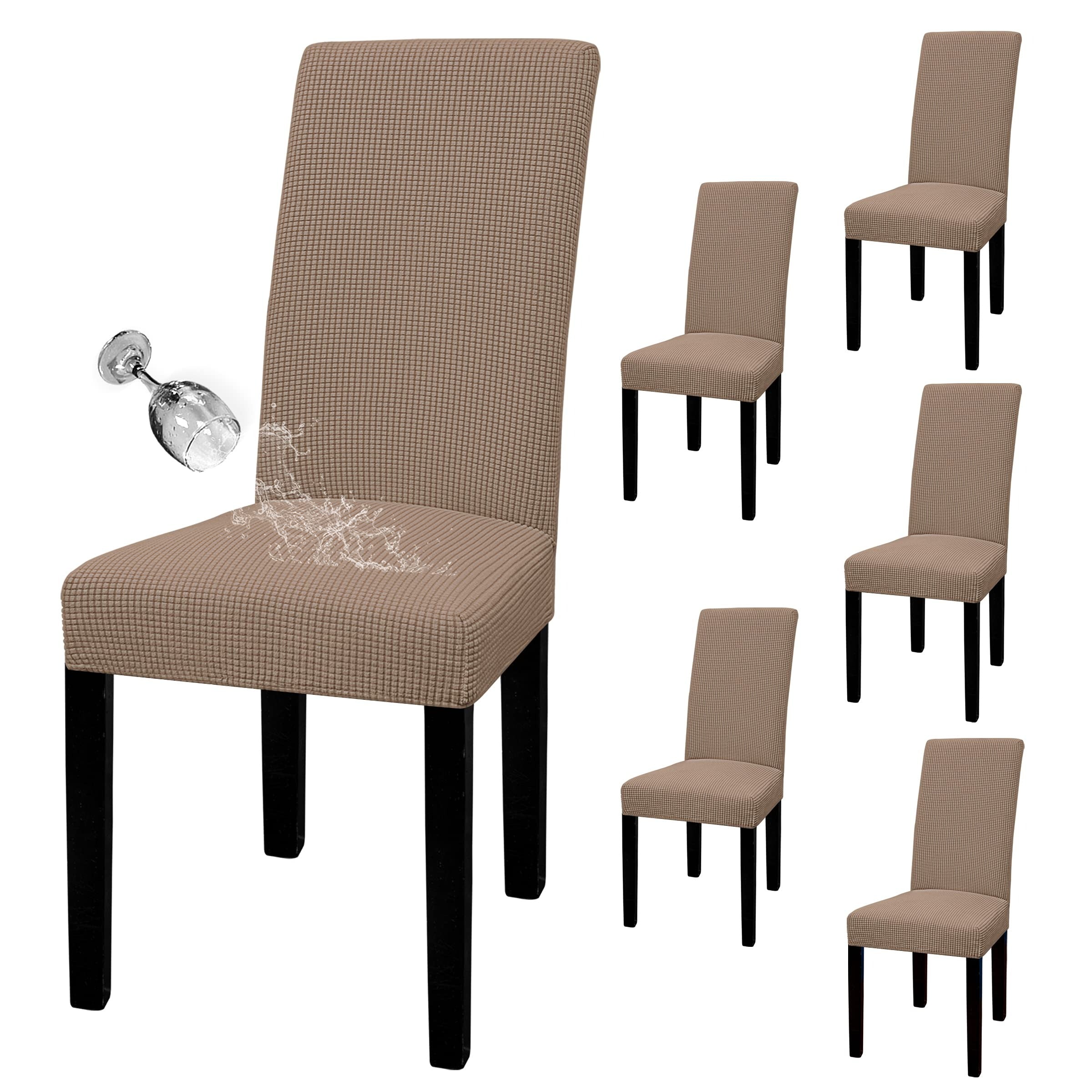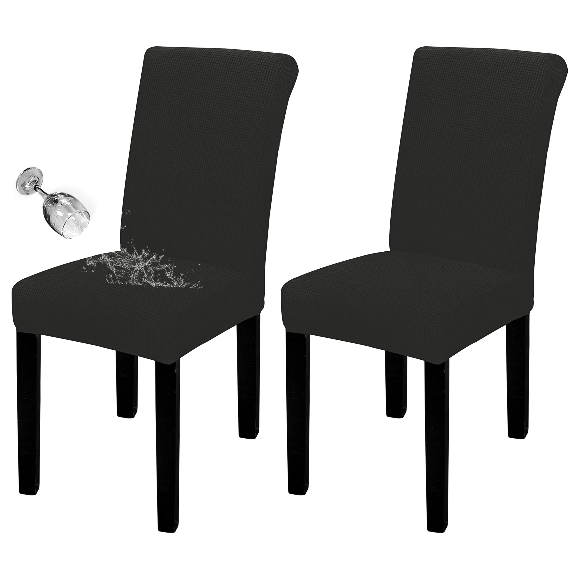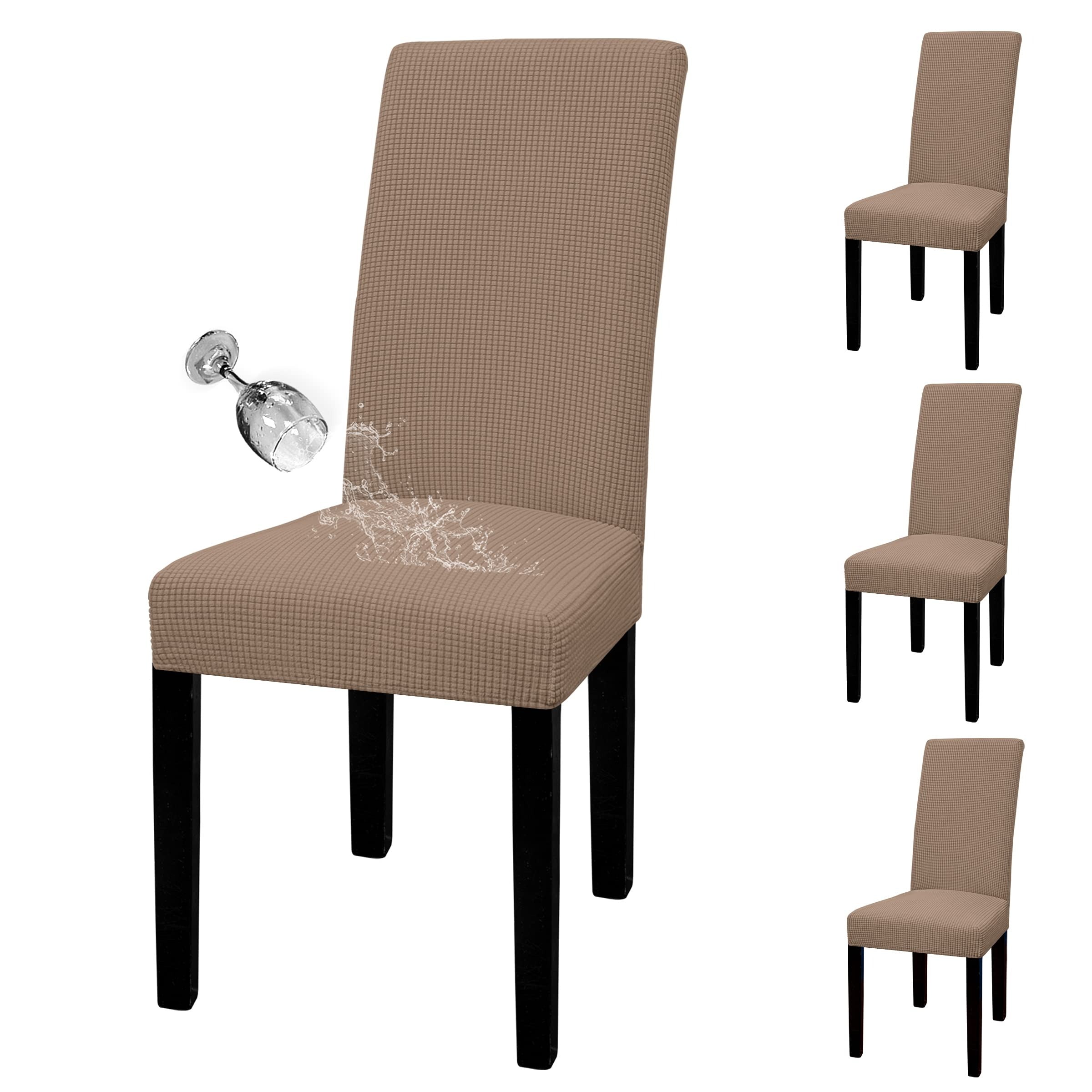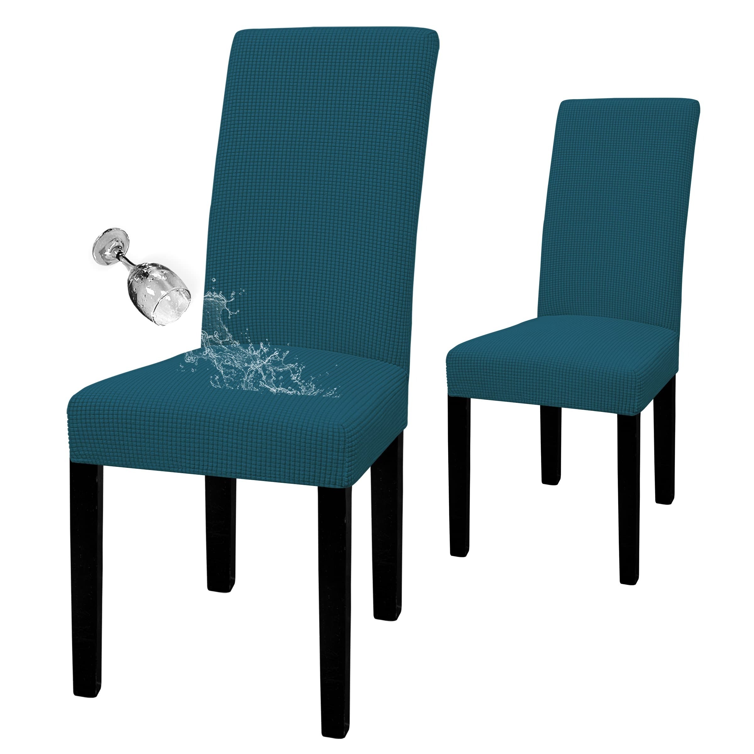 Waterproof Dining Chair Cover: Top Fabric is processed with waterproof treatment, and back coated with waterproof layer. Dual waterproof feature can guarantee 100% waterproof effect and leakproof, providing protection against wet stains, pet damages and any accident spills.