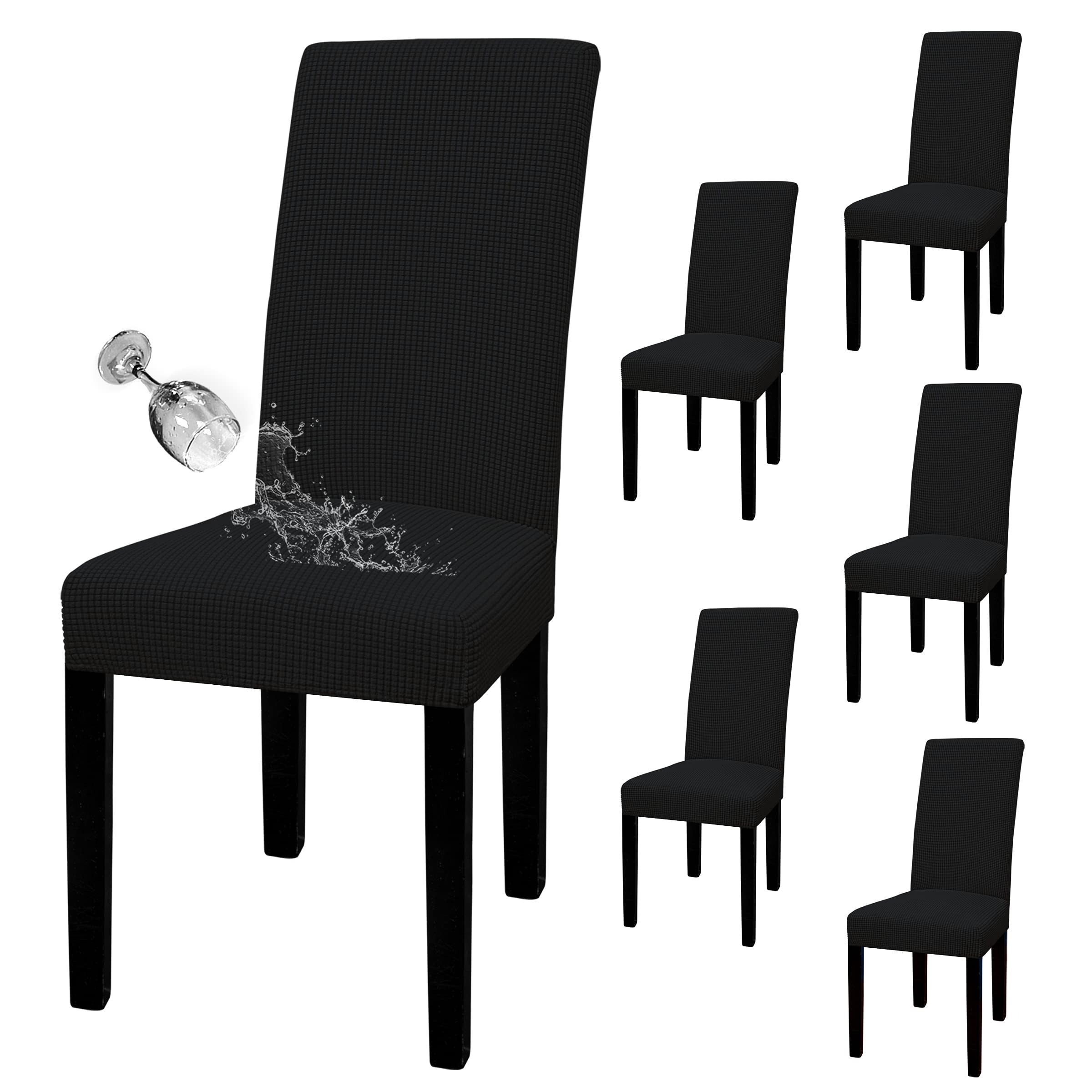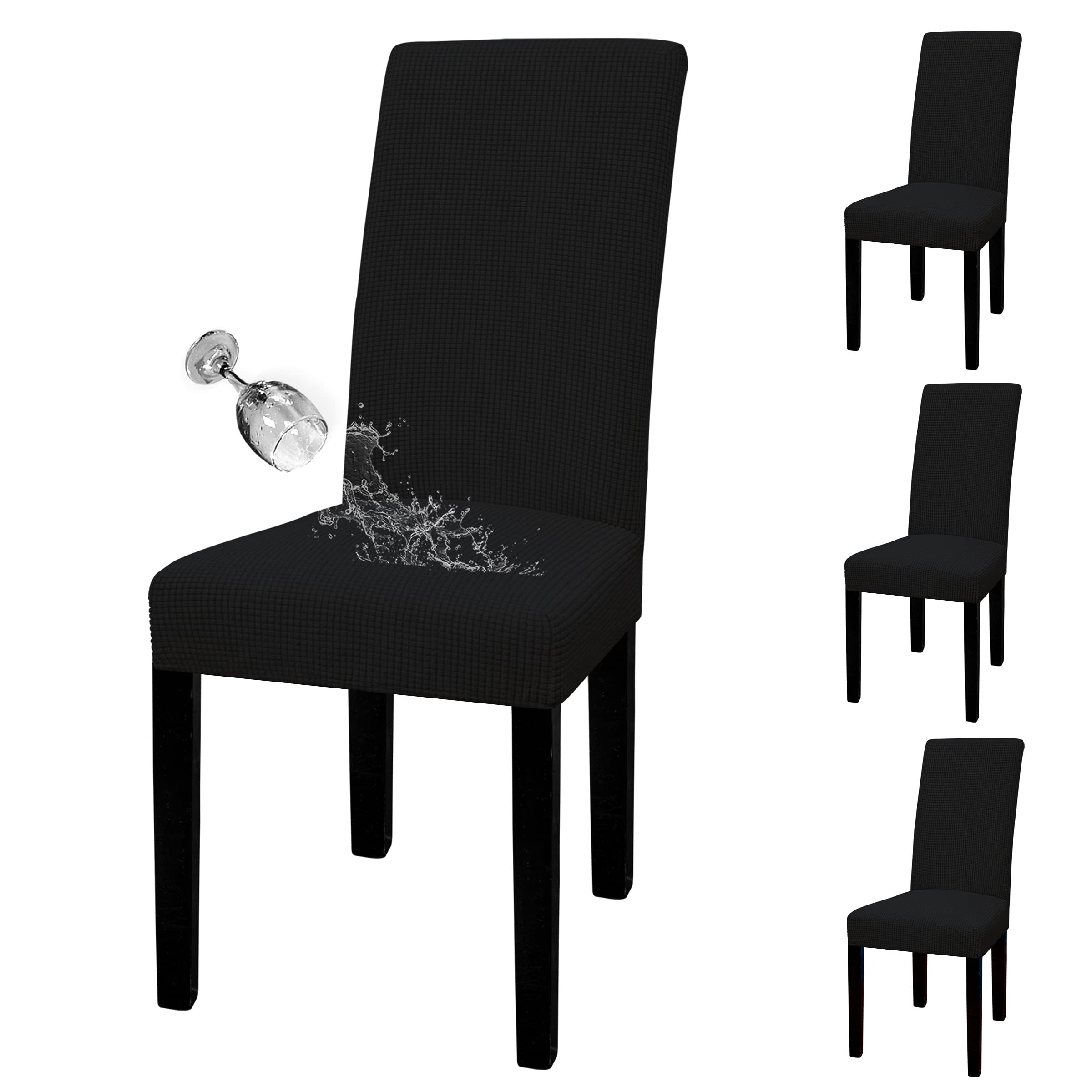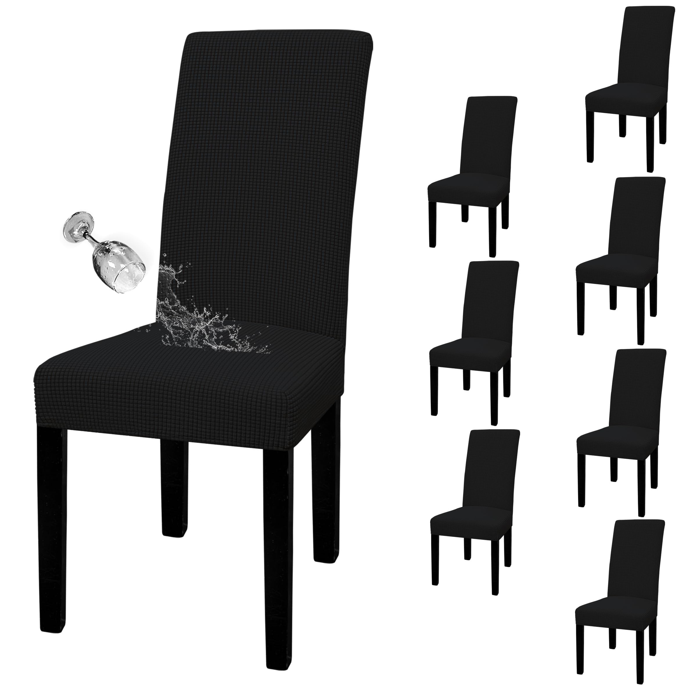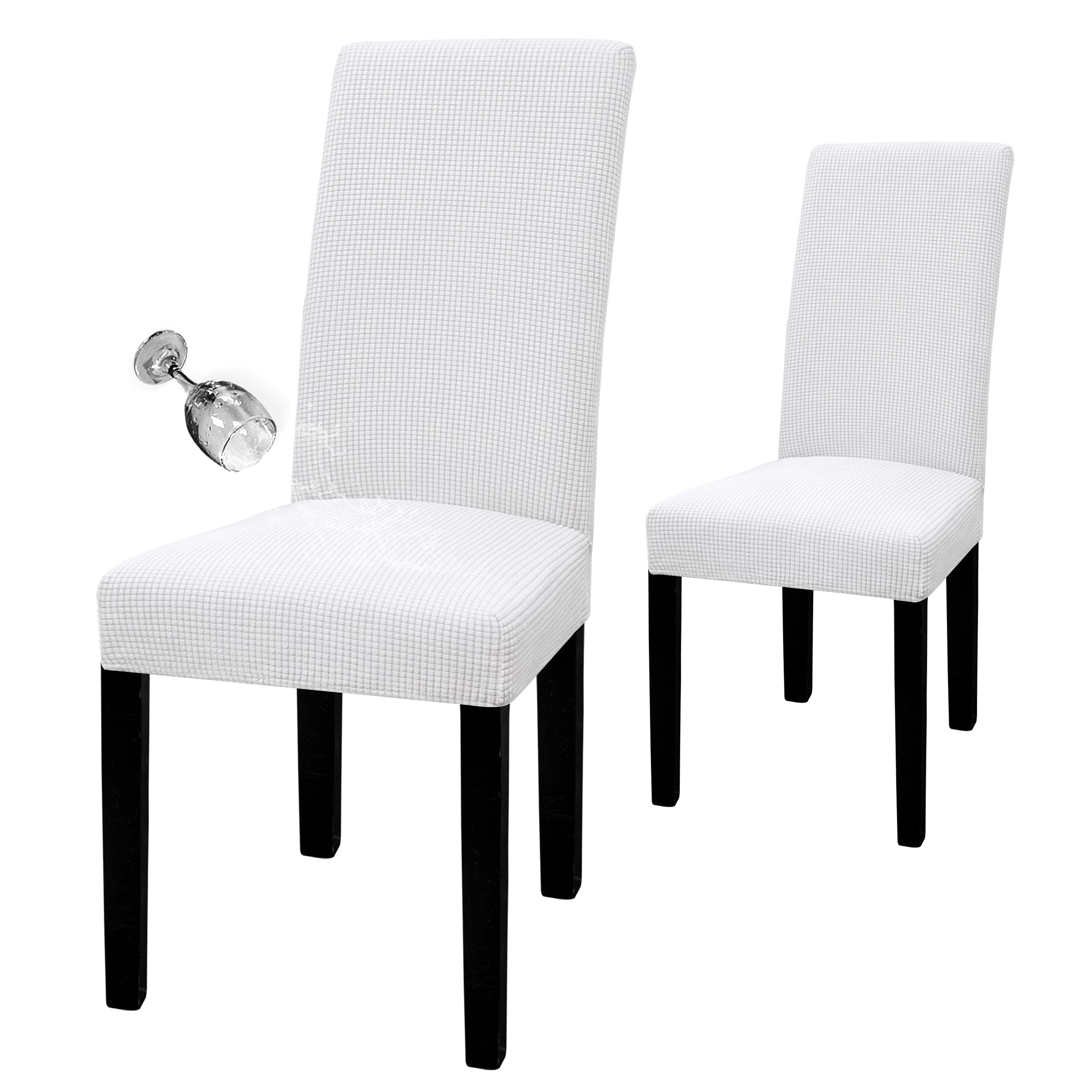Waterproof Dining Chair Cover: Top Fabric is processed with waterproof treatment, and back coated with waterproof layer. Dual waterproof feature can guarantee 100% waterproof effect and leakproof, providing protection against wet stains, pet damages and any accident spills.