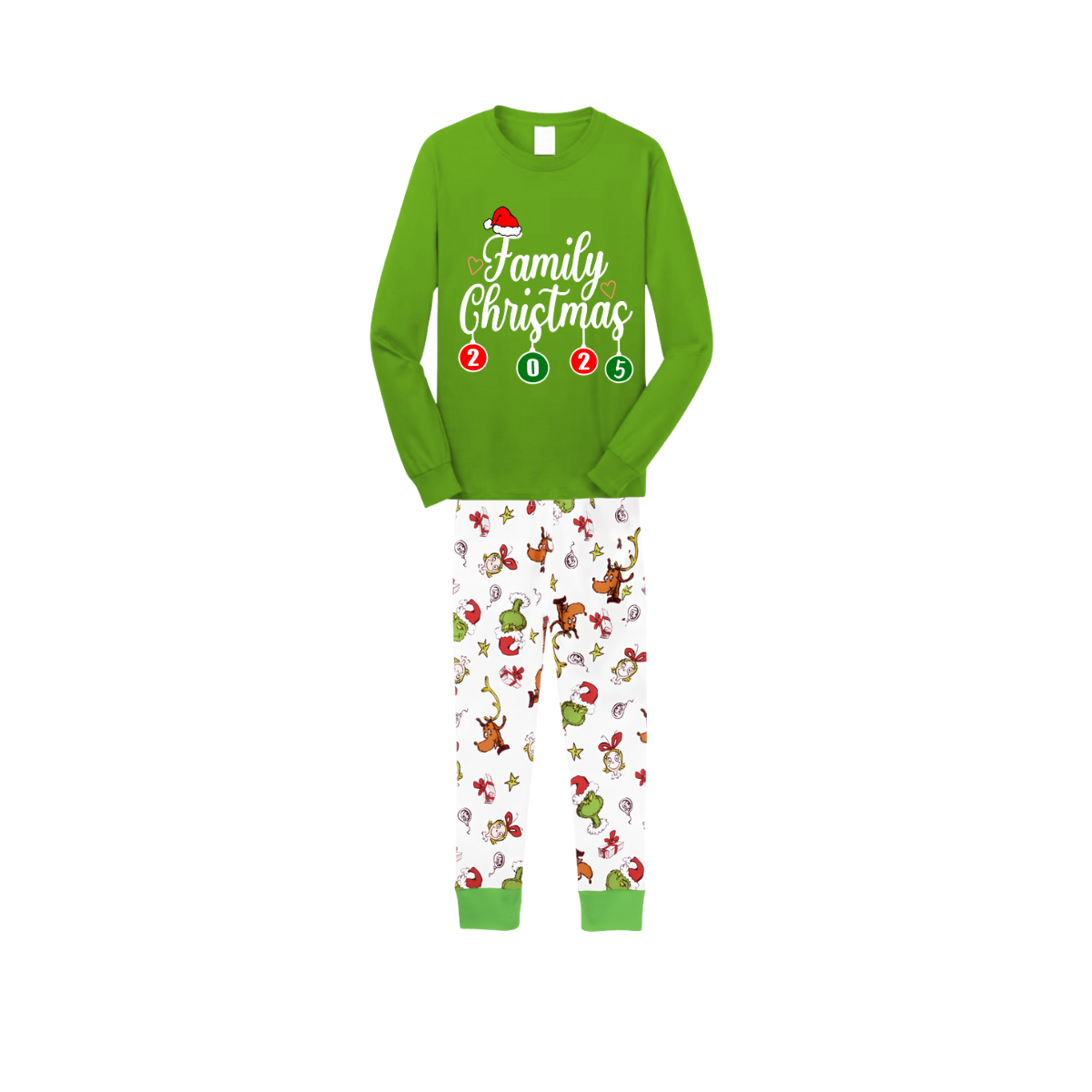 Family Christmas 2025 Pajamas Set - Green Top / Cartoon Print Pants