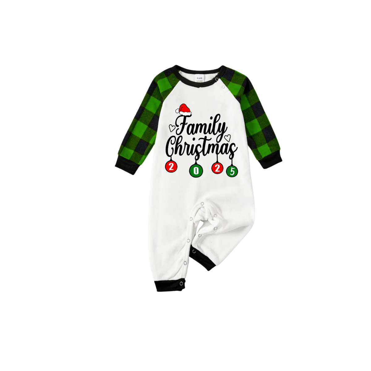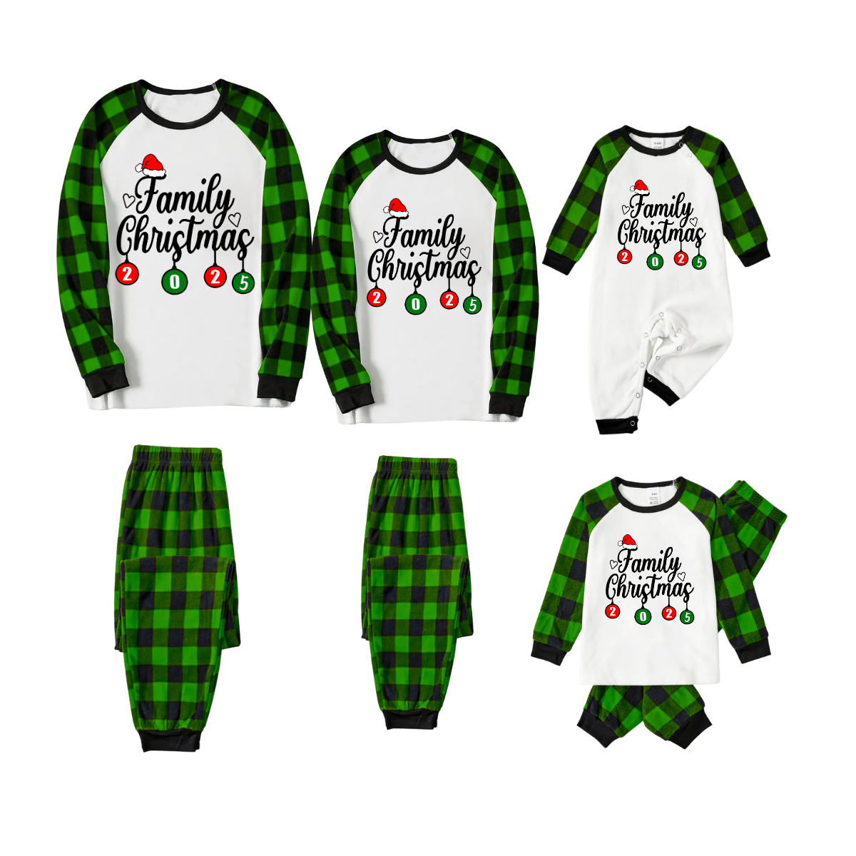 Family Christmas 2025 Pajamas Set - White Top / Green Plaid