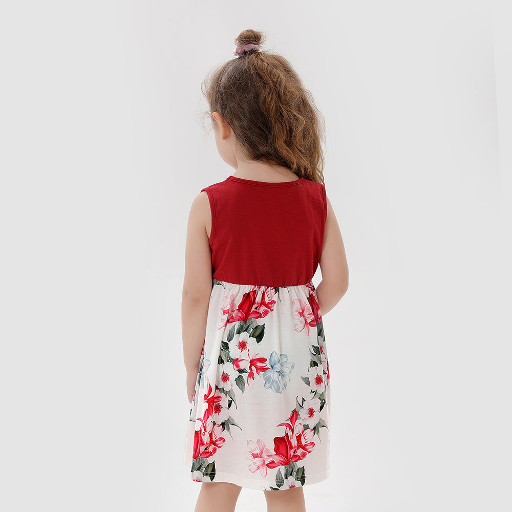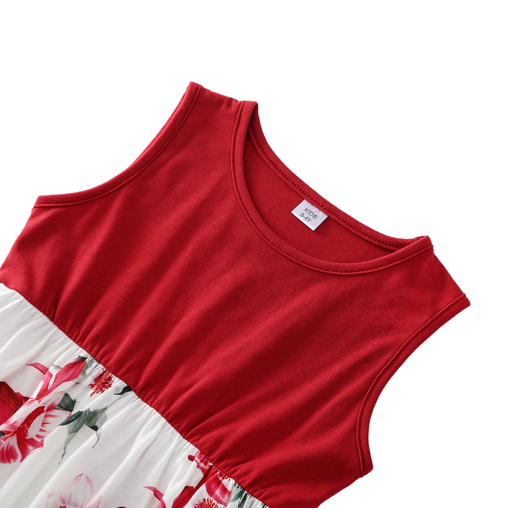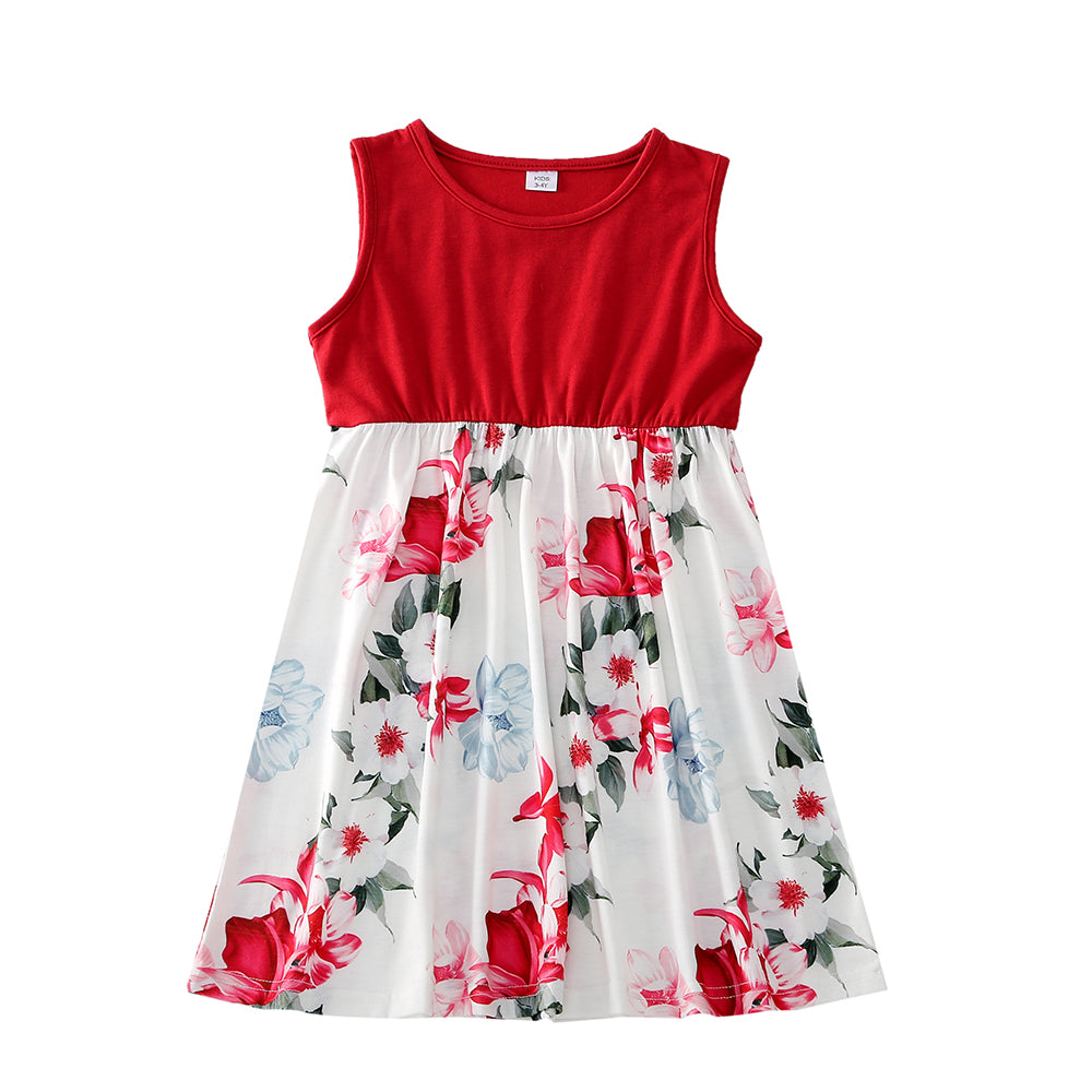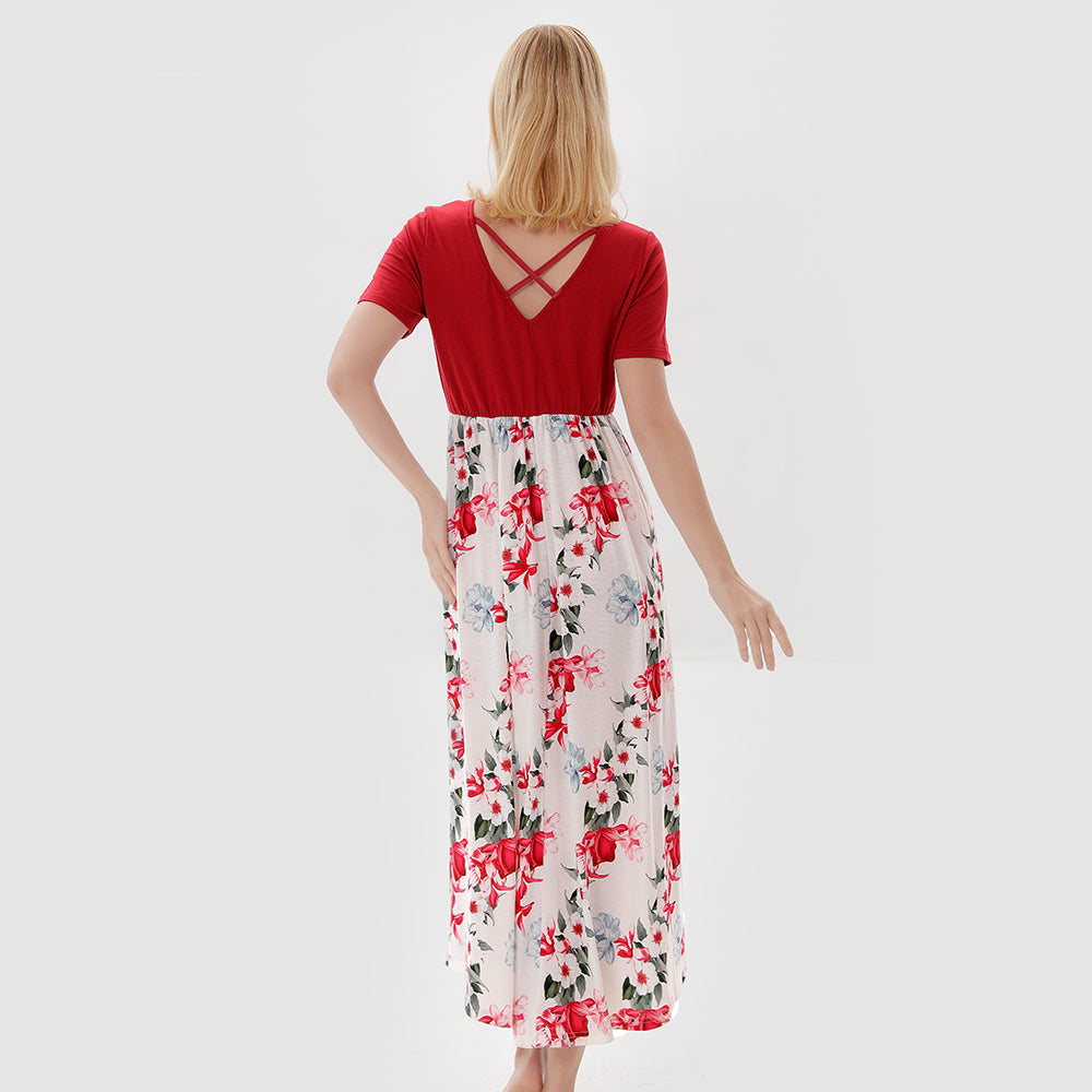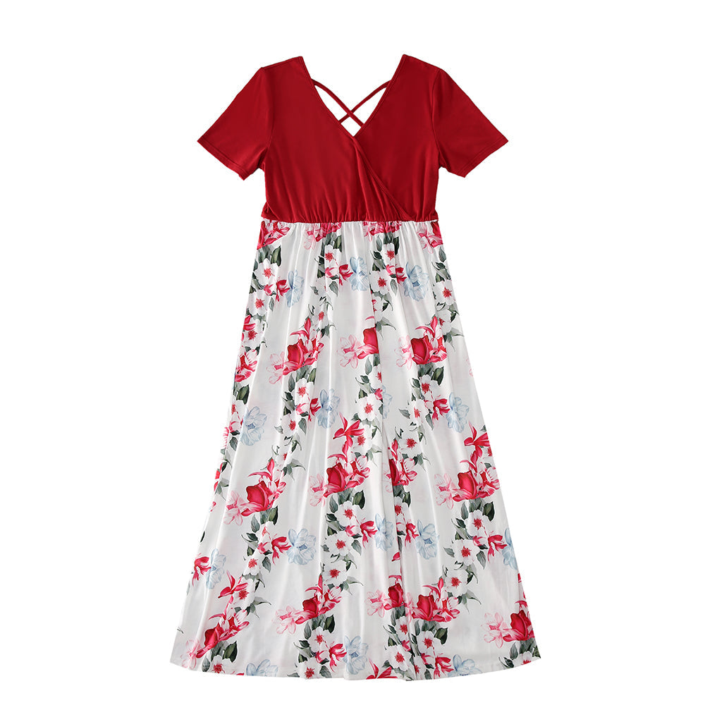 Family Matching Outfit Red Floral Print Dresses & T-shirts Sets