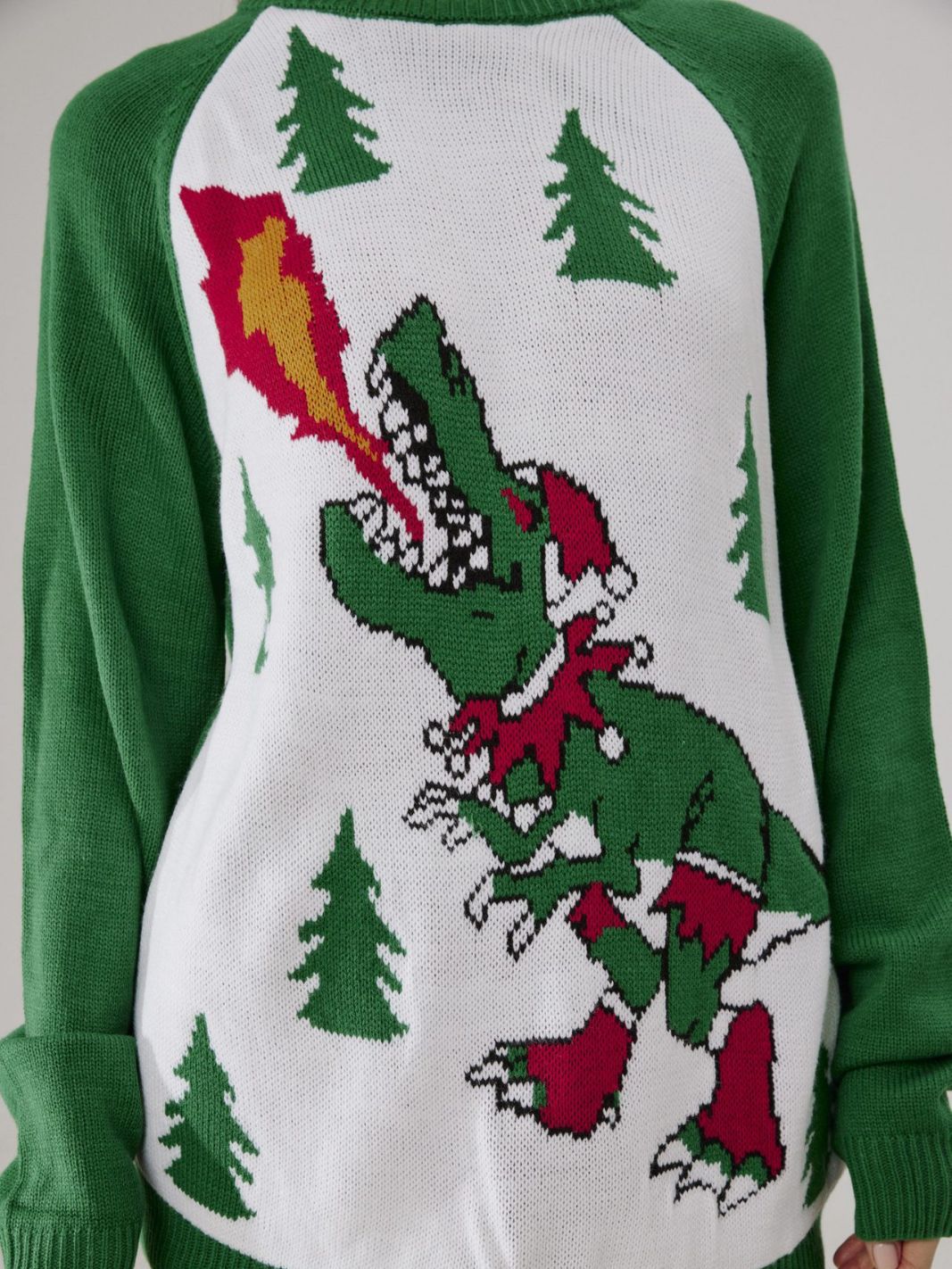 Fire Dinosaur Pattern Ugly Christmas Knitted Sweater