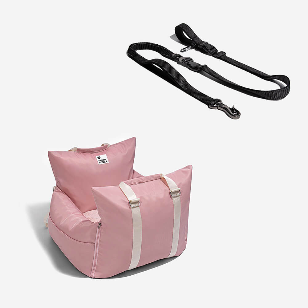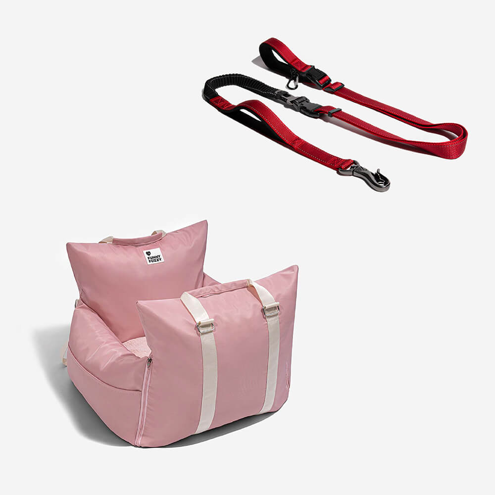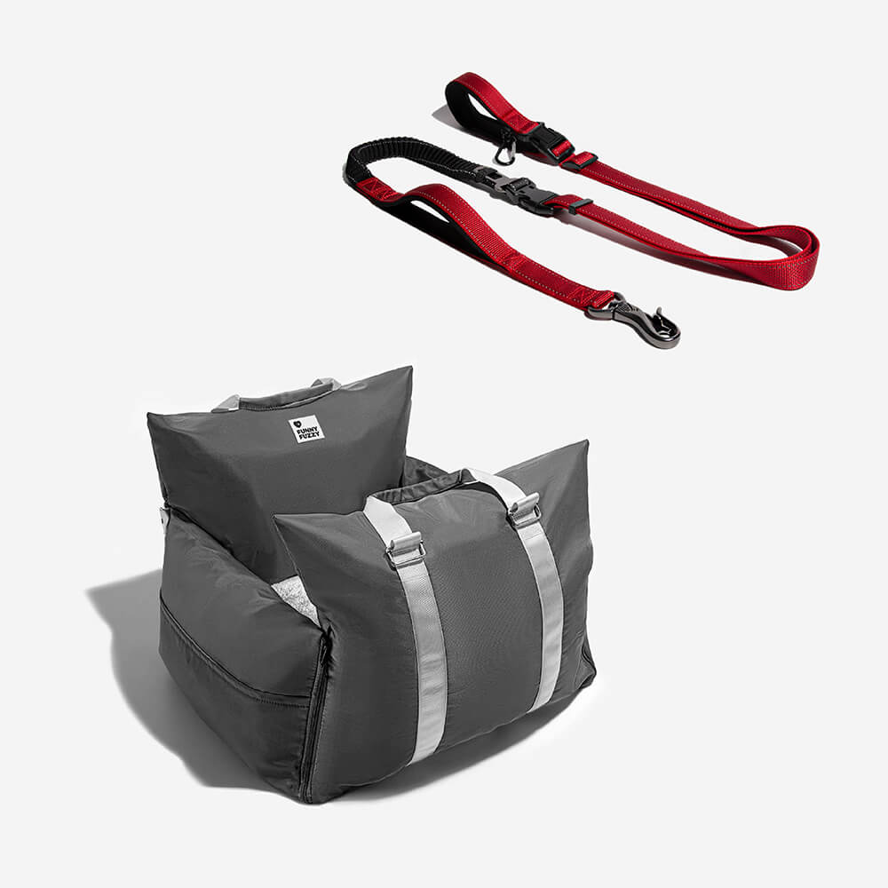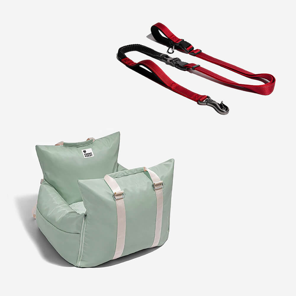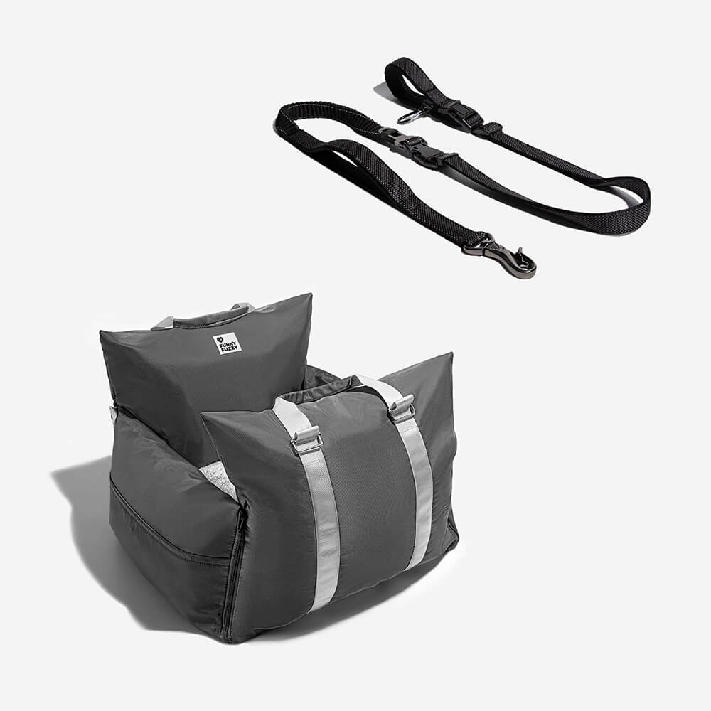 FunnyFuzzy Car Dog Bed Gives Dogs a First Class Experience. No matter how steep the mountain road is, the triple protection of the first-class cabin can make your dog sleep peacefully in the seat and this leash is great for use with the car dog bed.
