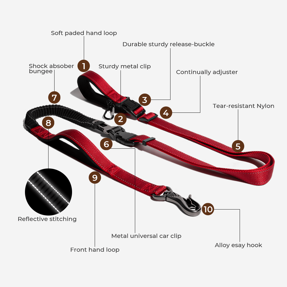 6 in 1 LeashHands-free|Shock Absorbing Bungee|Safety Seatbelt|Stationary tether|Traffic control|Reflective|Adjustable