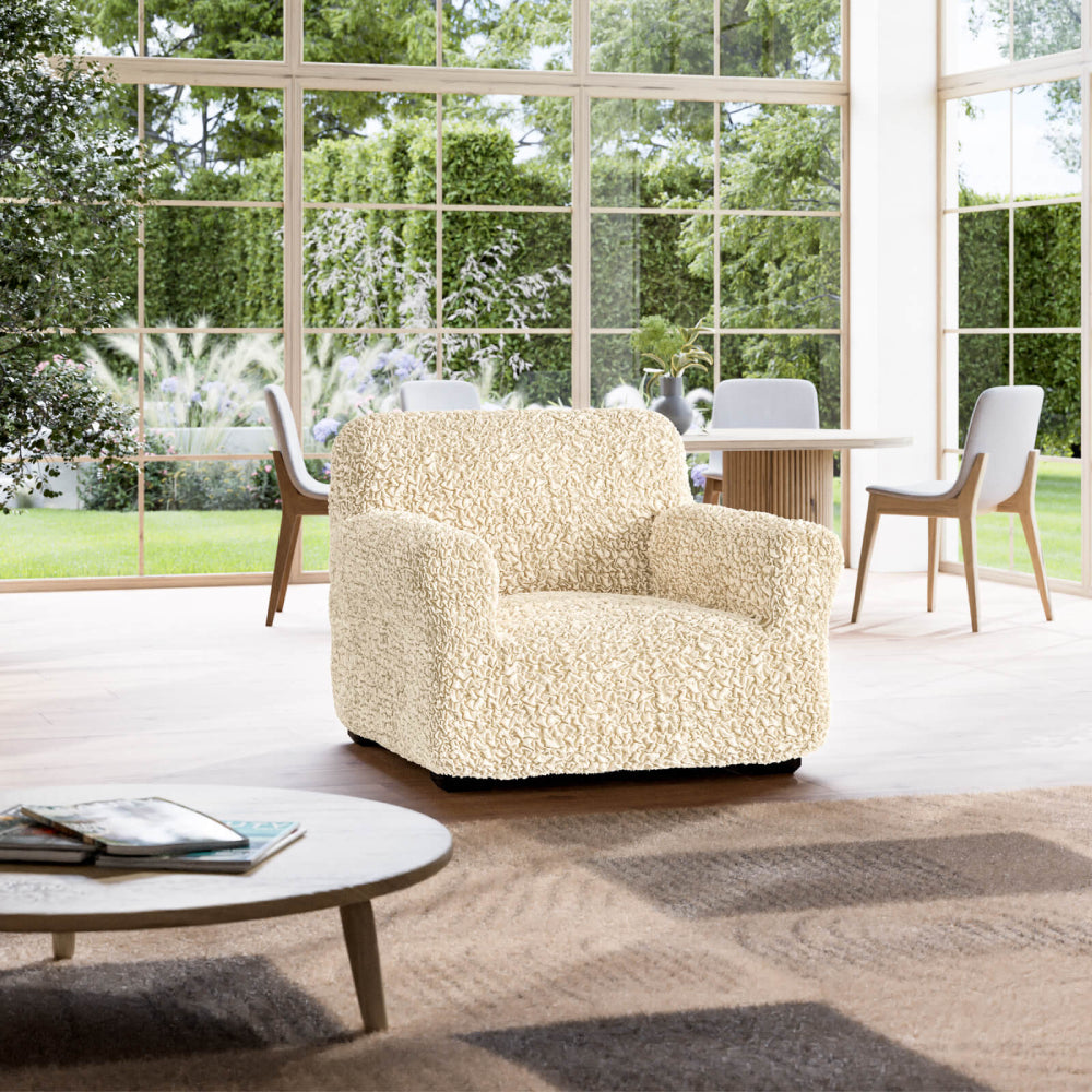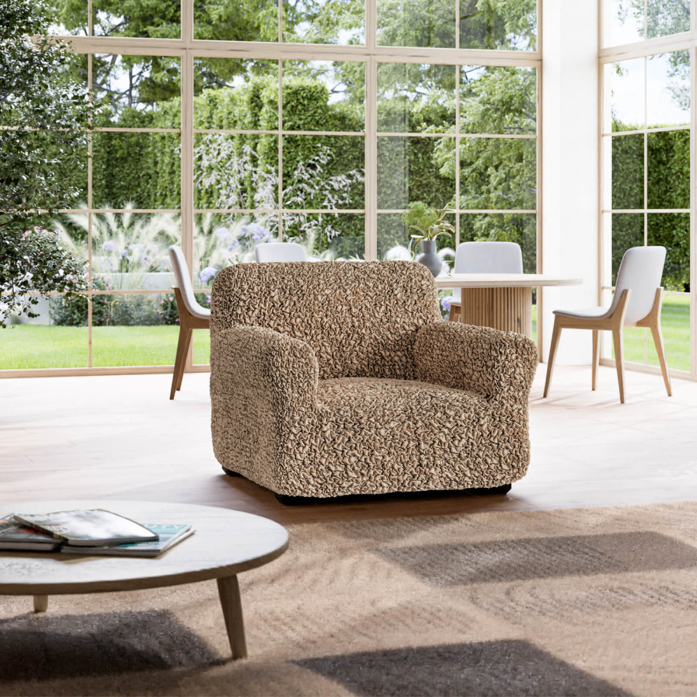 Designed to suit a wide range of chairs including T-cushion, wing, wingback, barrel, and swivel chairs. Crafted with our patented stretch material, this slipcover accommodates armchairs between 21”- 39” in width. PLEASE MEASURE BEFORE ORDERING.