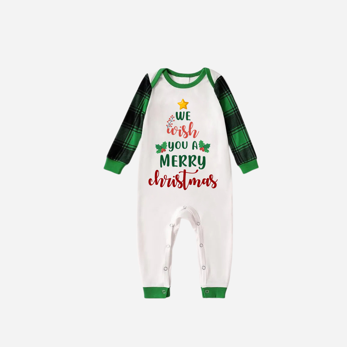 Green Raglan Top Green Plaid Christmas Pajamas Set With "We Wish You a Merry Christmas" Text Print