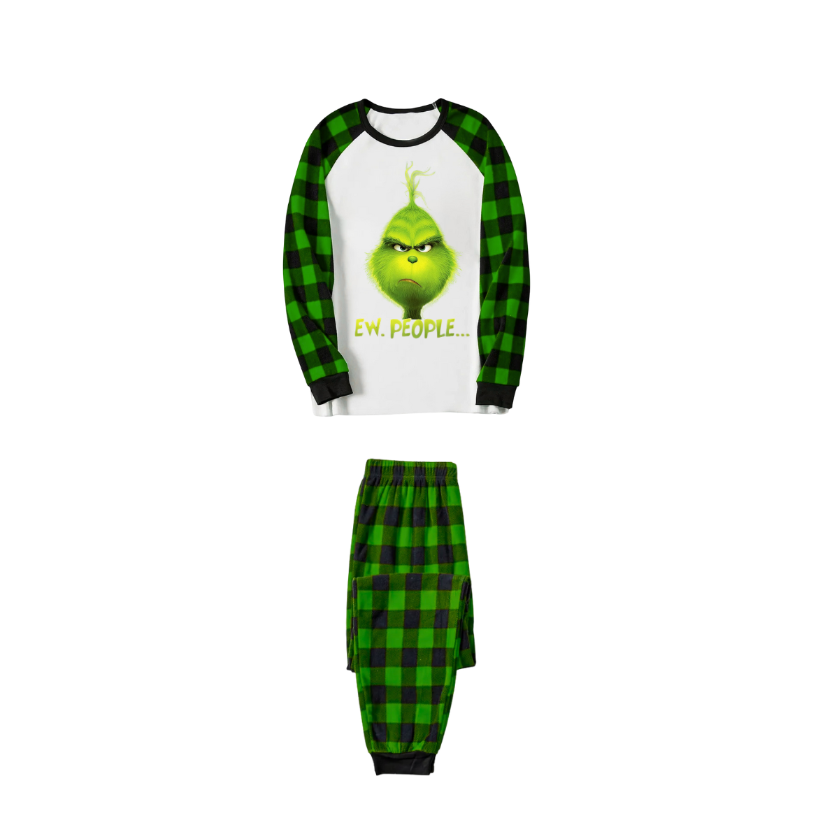 Grinch Ew People Christmas Pajamas - Green Buffalo Plaid