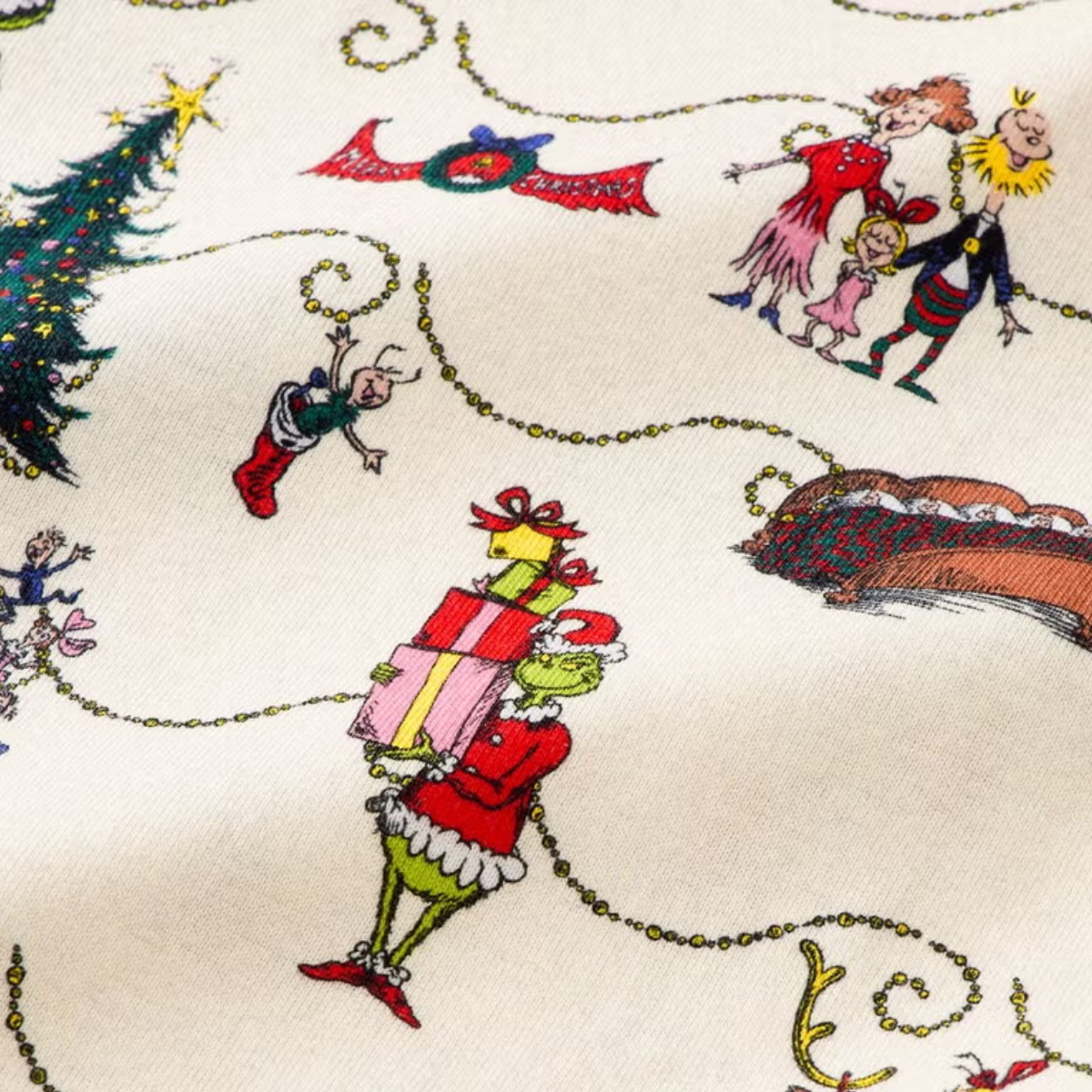 Grinch Family Christmas Pajamas | Cream Matching Holiday Sleepwear Set