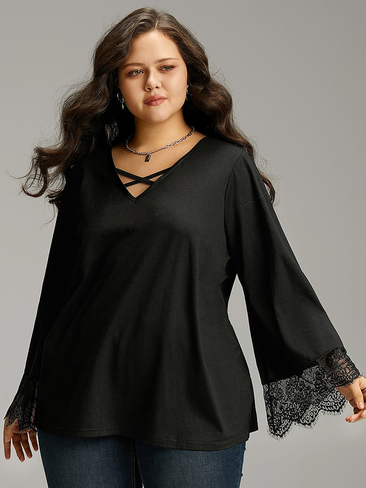 Guipure Lace Crisscross Flutter Sleeve T-shirt1006tees