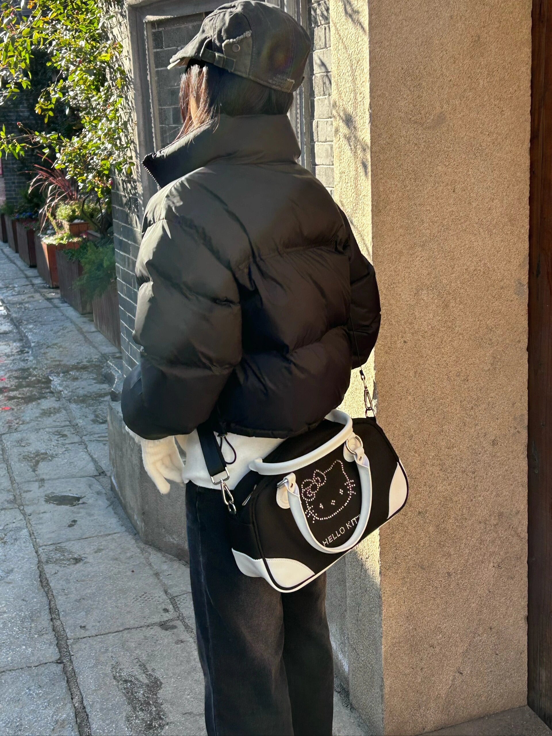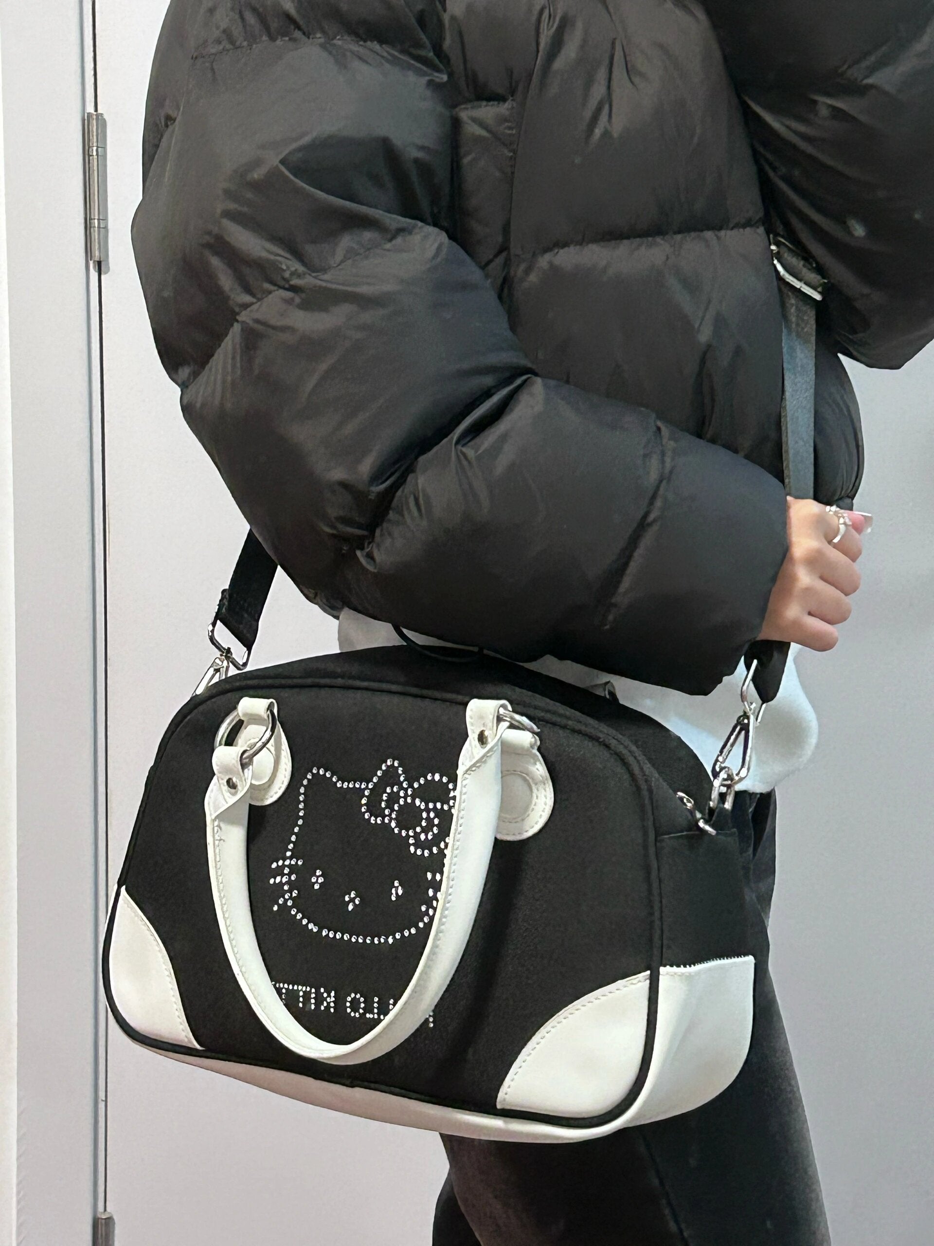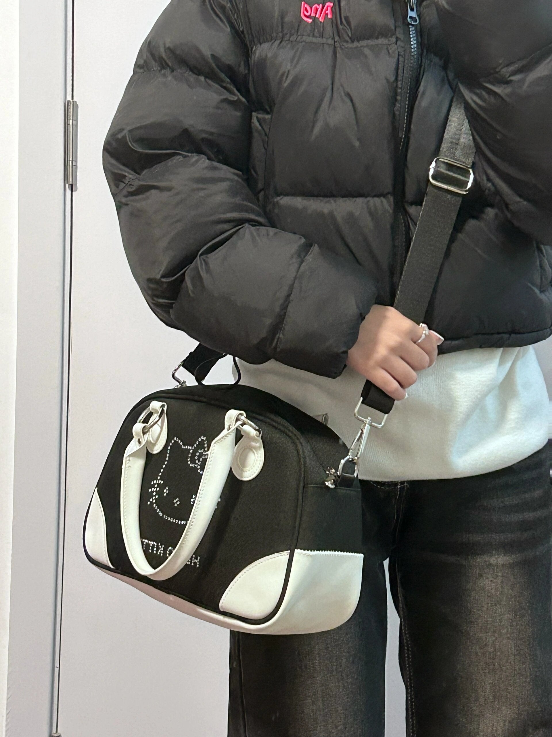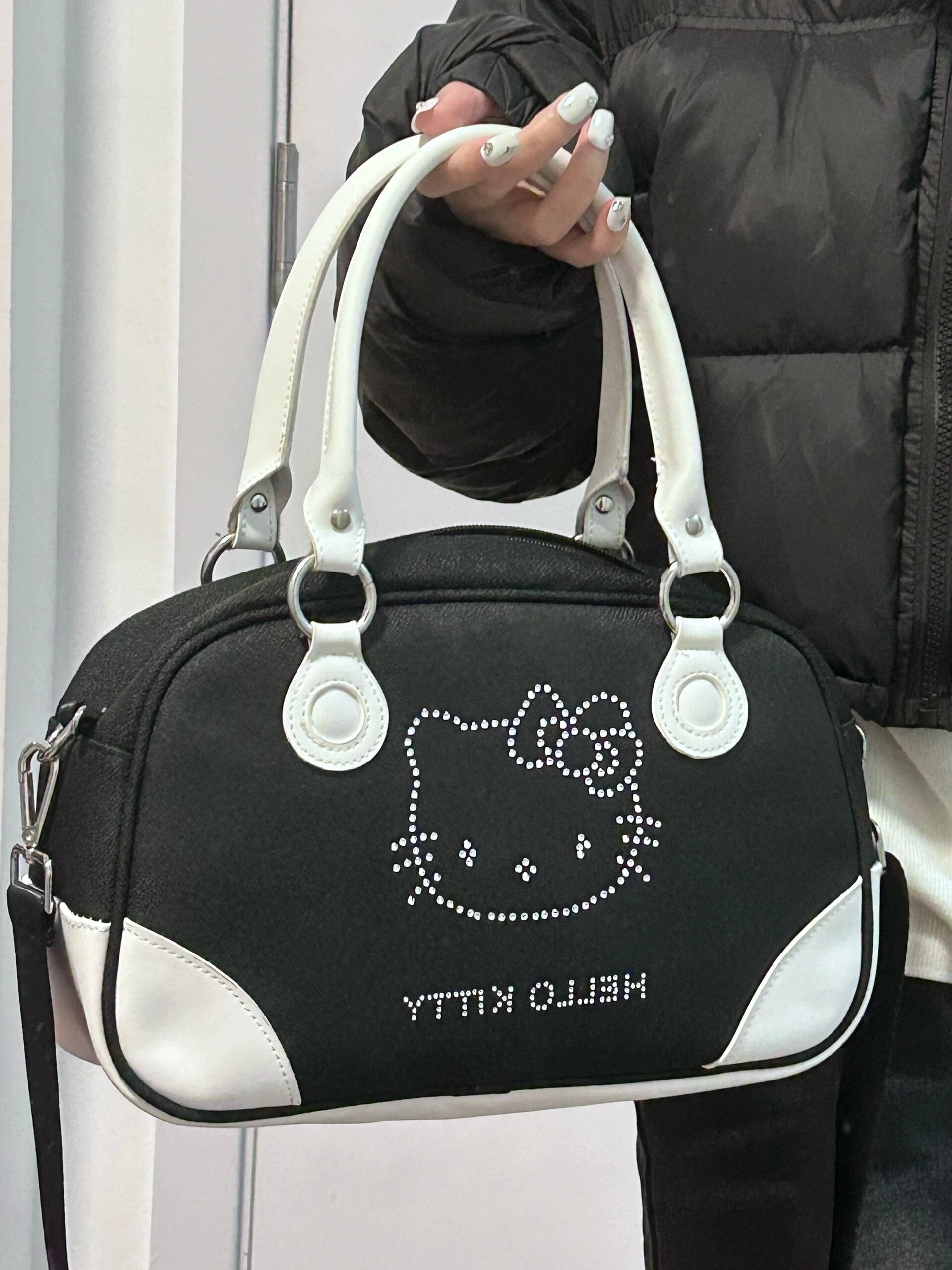 Hellokitty Black Tote Bag with Zipper Sturdy Tote Purse Crossbody Hand Bag for School, Travel