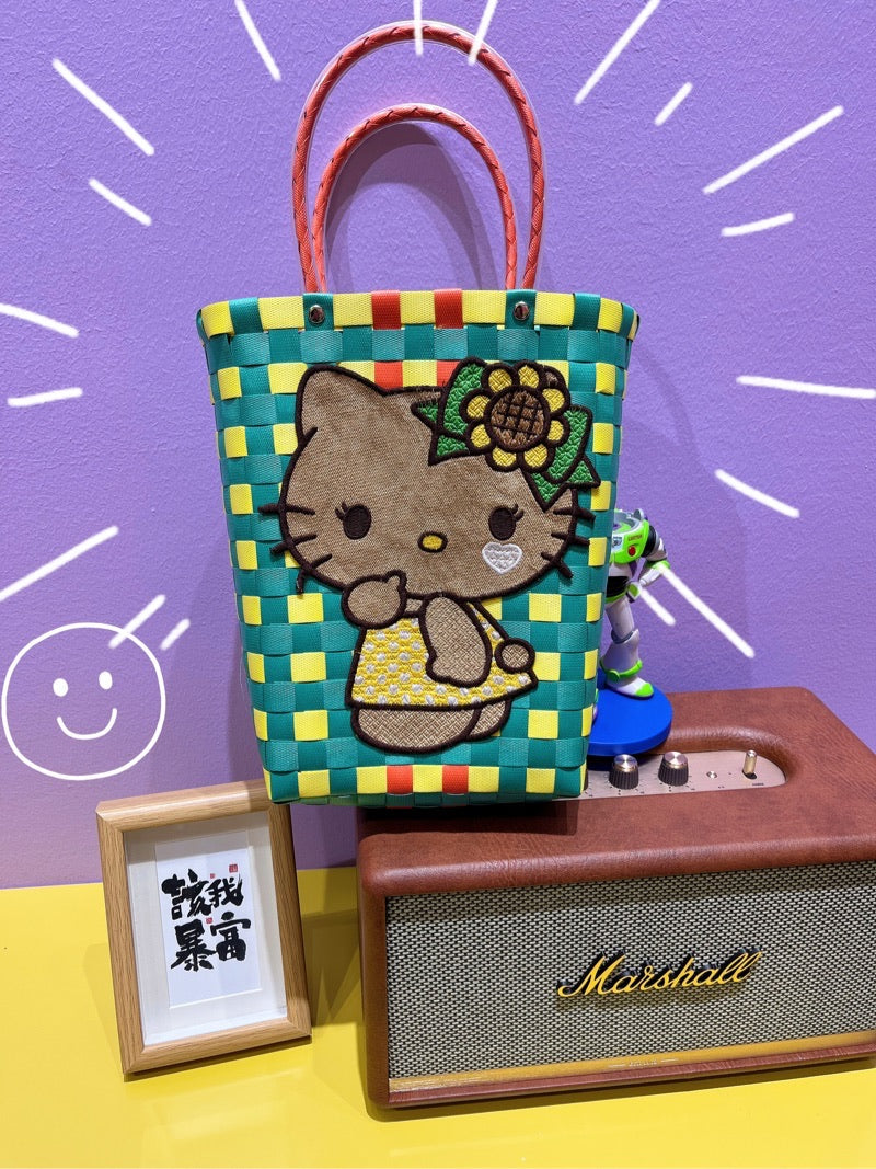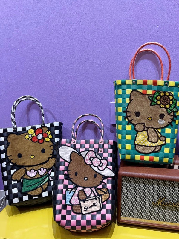 Embrace the summer vibes with the Hello Kitty Summer Woven Beach Tote Bag. This handmade bamboo handle handbag is a stylish straw purse for women who love to add a touch of Hello Kitty charm to their beach outings. Carry your essentials in this fashionable and functional tote, perfect for sunny days by the shore.