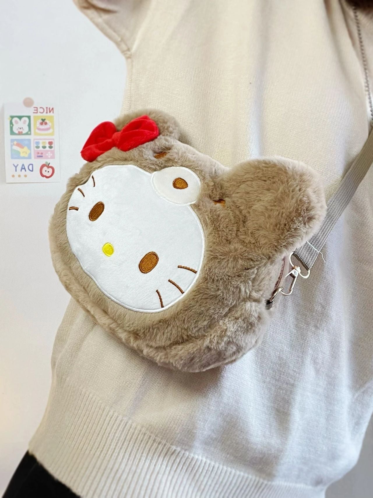 Hellokitty Teddy Bear Cute Plush Crossbody Purse for Girls, Kawaii Bowknot Shoulder Bag