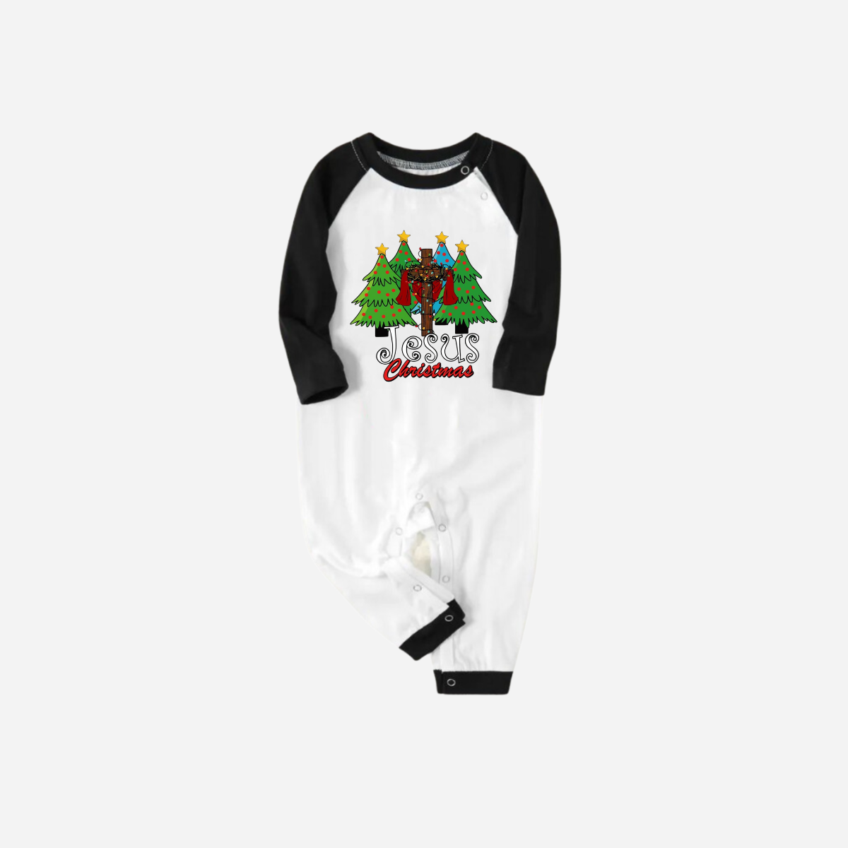 Jesus Christmas Family Matching Pajamas Set - Black and White Top with Green Plaid Pants
