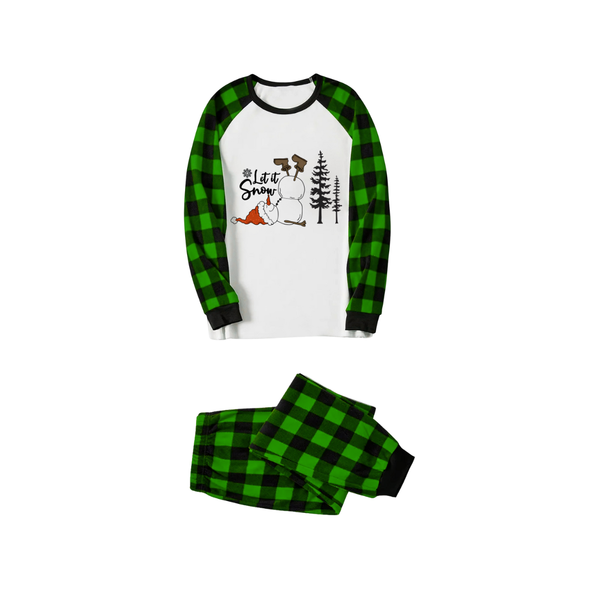 Let it Snow Plaid Family Pajamas - Green Buffalo Check